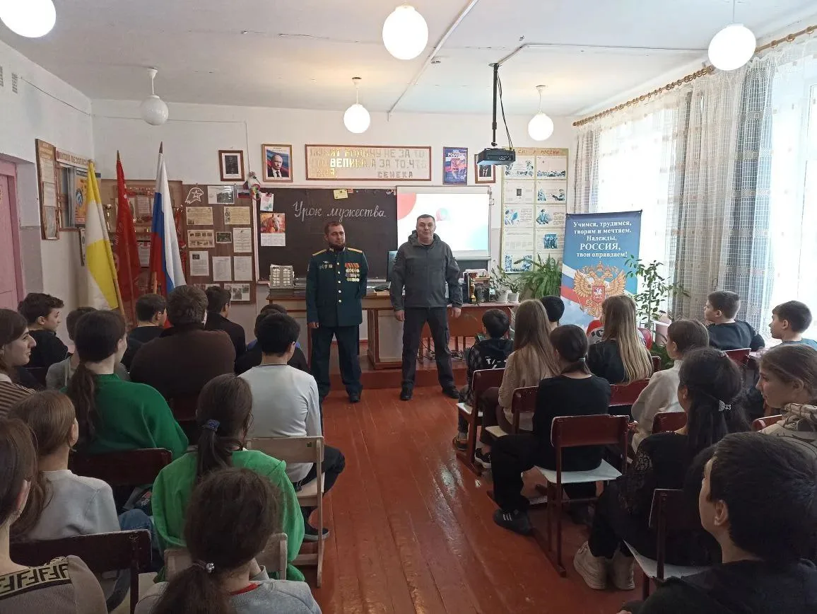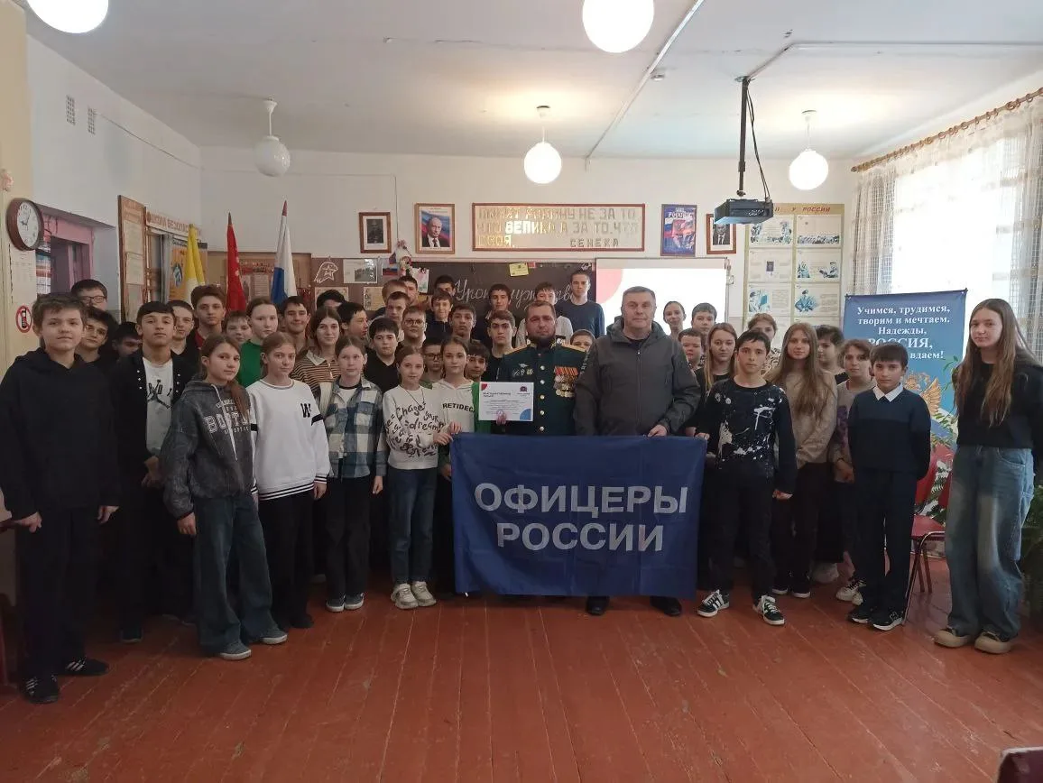 19 февраля 2026 года в МБОУ СОШ № 4 села Нижняя Александровка прошёл урок мужества. Мероприятие провели представители «Офицеров России»: