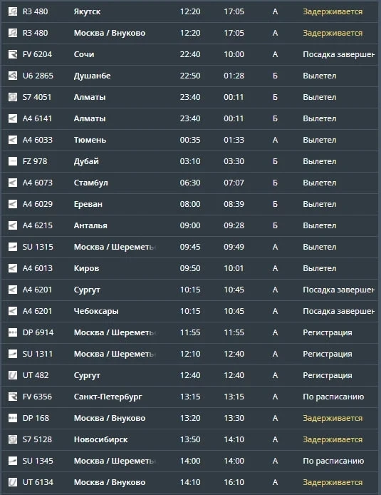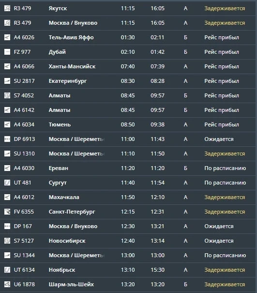 Также ещё два рейса ушли на запасной аэродром во Владикавказе: Санкт-Петербург — Махачкала и Москва — Махачкала.