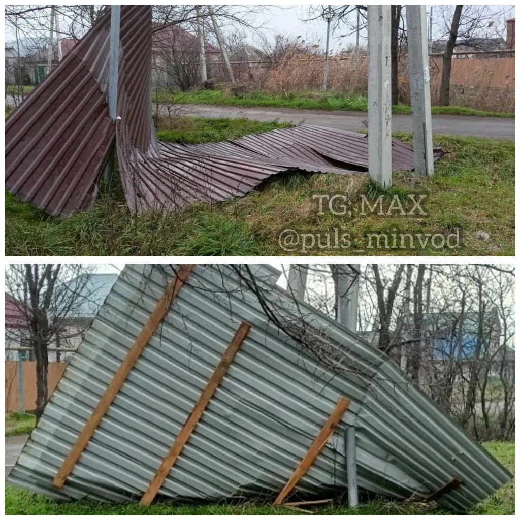 В Бородыновке из-за сильного ветра часть крыши улетела и нанизана на столб Ростелекома.