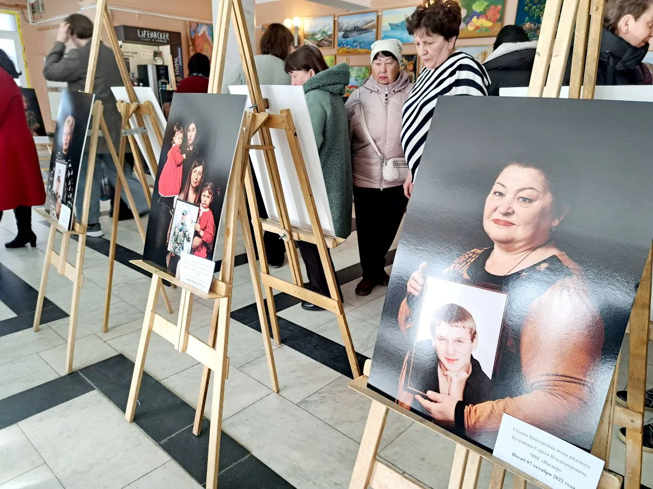 На мольбертах с фотографиями - семьи ветеранов специальной военной операции, семьи действующих бойцов СВО, а также семьи погибших участников СВО Минераловодского округа.
