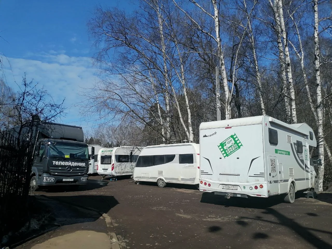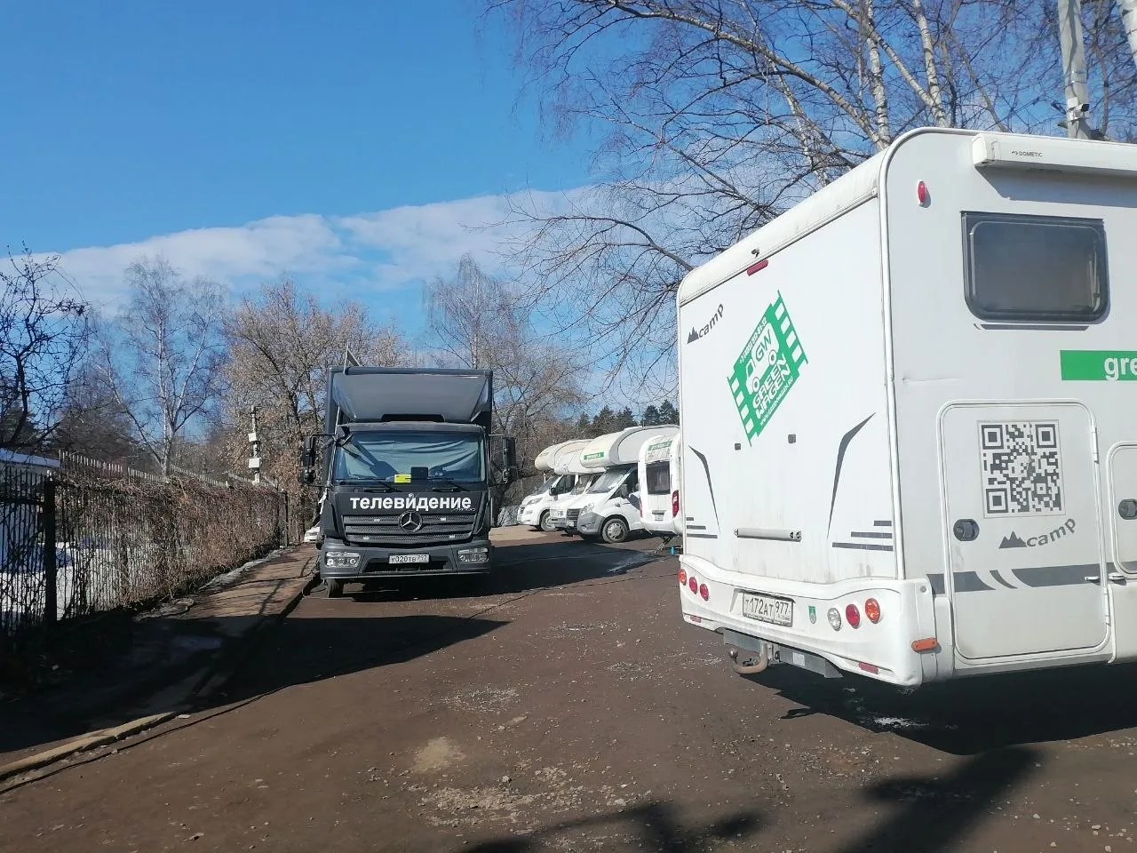 В Правде у платформы остановился целый караван из киношных трейлеров.