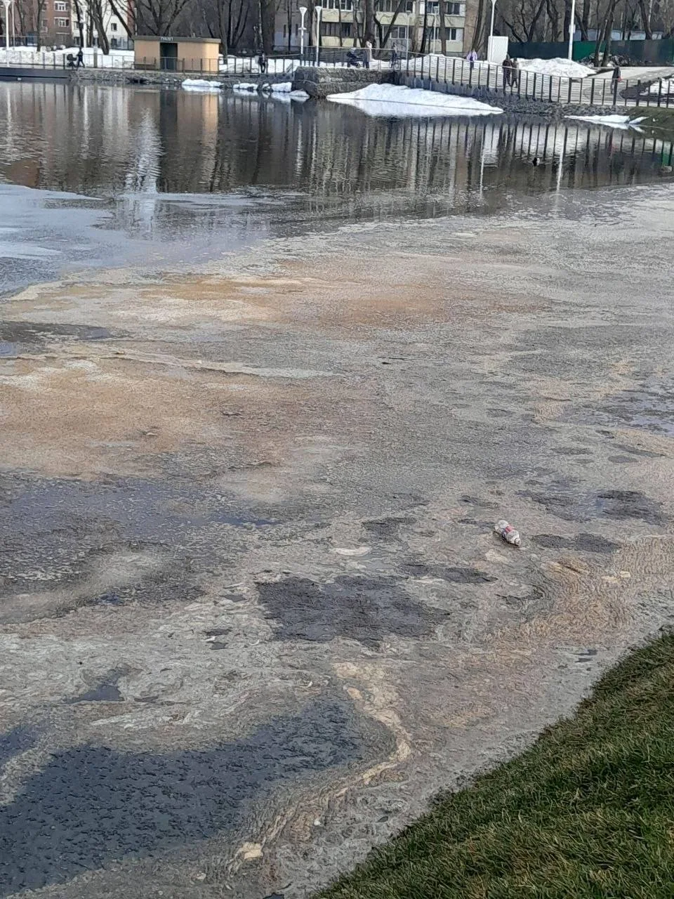 Жители переживают: после зимы и таяния льда на Травинском озере плавает какая-то грязь.