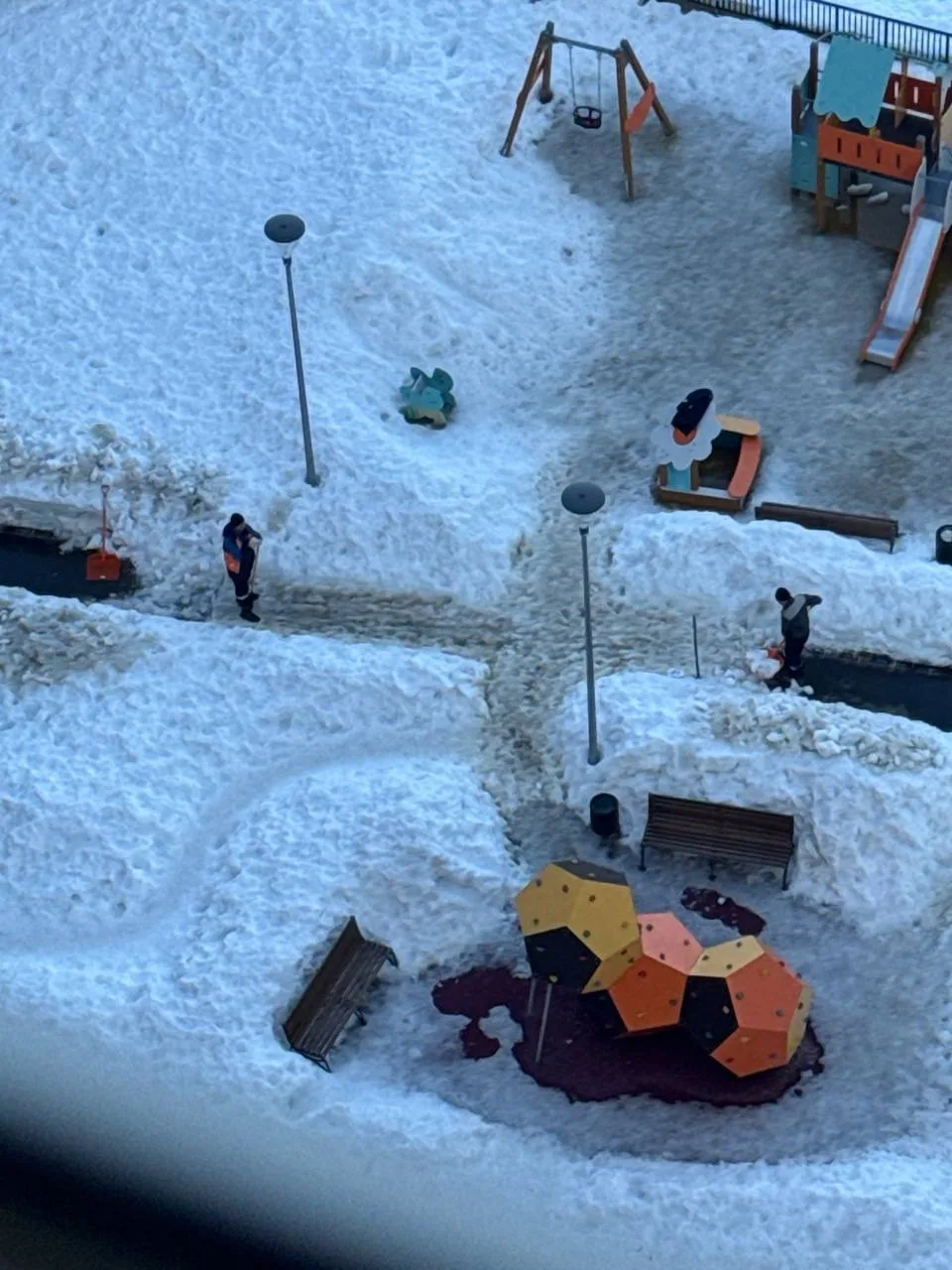 Снег не вывозили, лёд не скалывали, песком не посыпали. Сейчас площадка — сплошной каток. Дети падают, гулять там опасно.