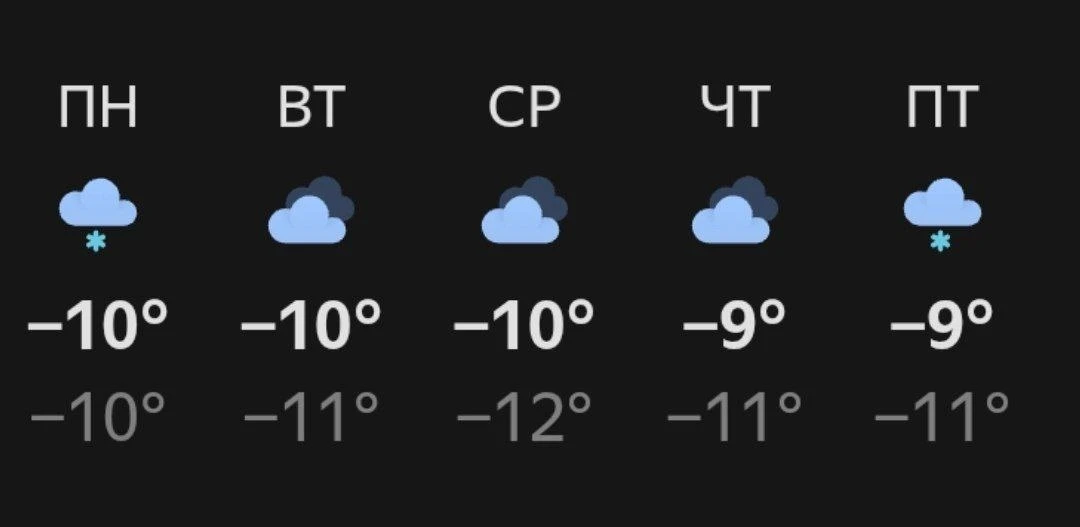 Судя по прогнозу, на этой неделе нас ждёт стабильная зимняя погода — без резких перемен, но с постоянными минусами.