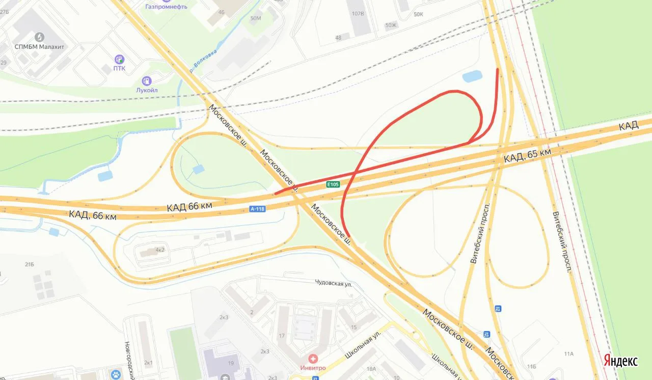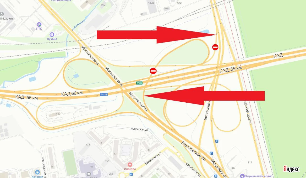 На развязке КАД с Московским шоссе полностью перекроют два съезда