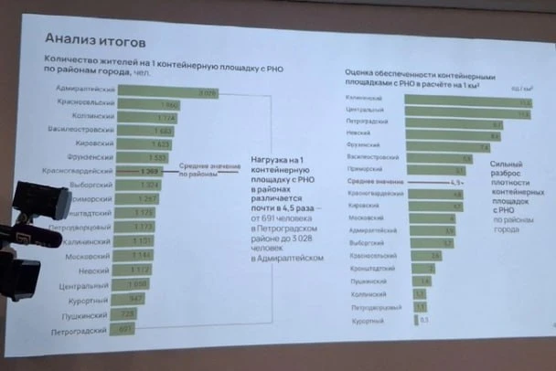 Средний показатель по городу — 1,37 тысячи человек на одну контейнерную площадку с раздельным накоплением отходов. Лучше всего ситуация в Петроградском (691), Пушкинском (728) и Курортном (947) районах.