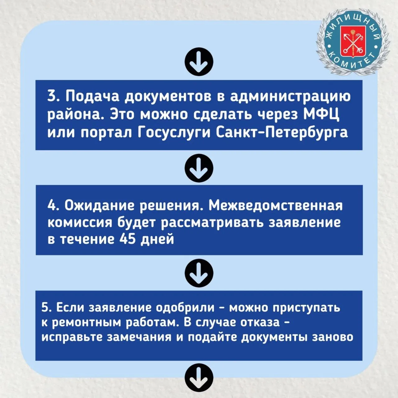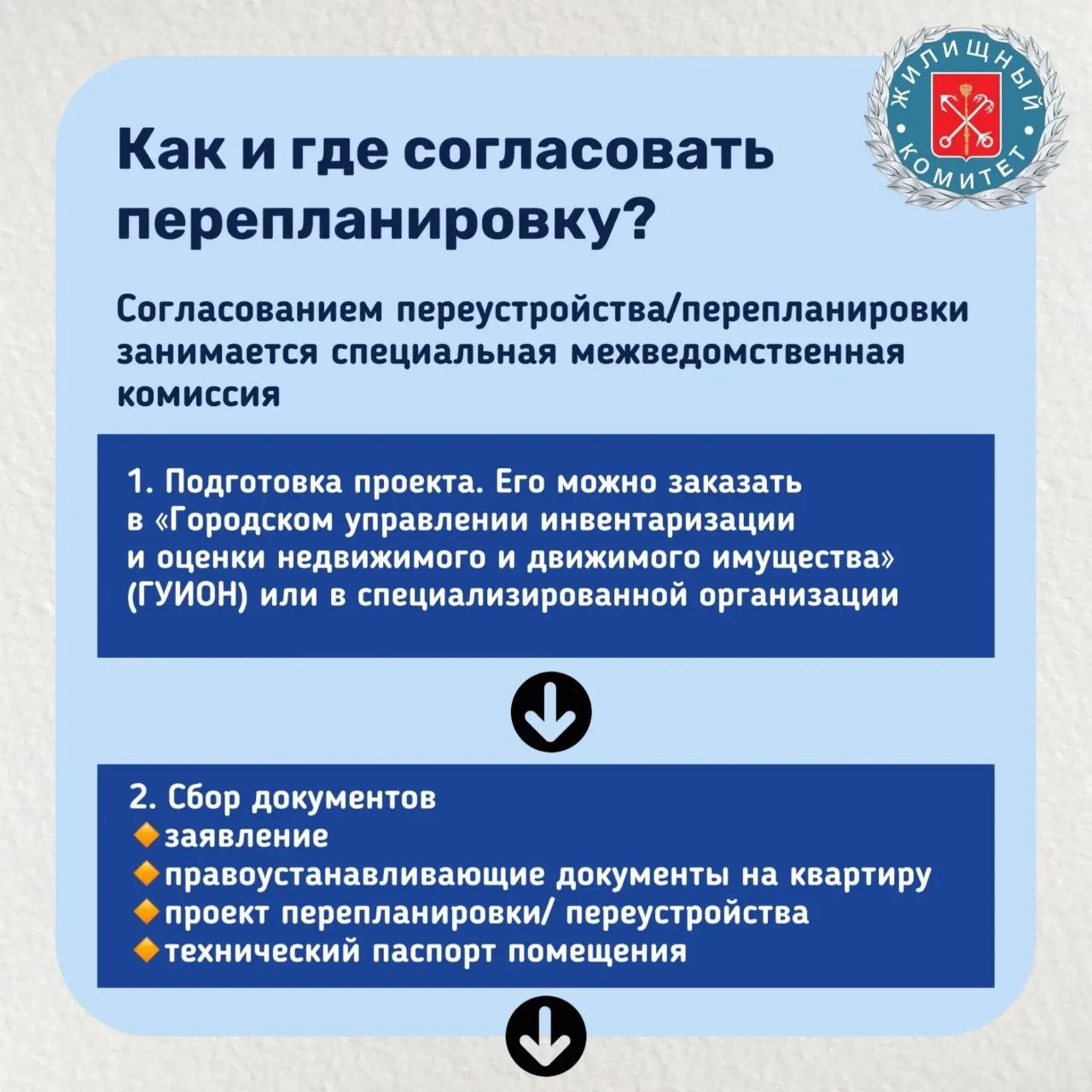 Жилищный комитет Санкт-Петербурга напоминает алгоритм действий, как законно и безопасно провести перепланировку или переустройство в своей квартире.