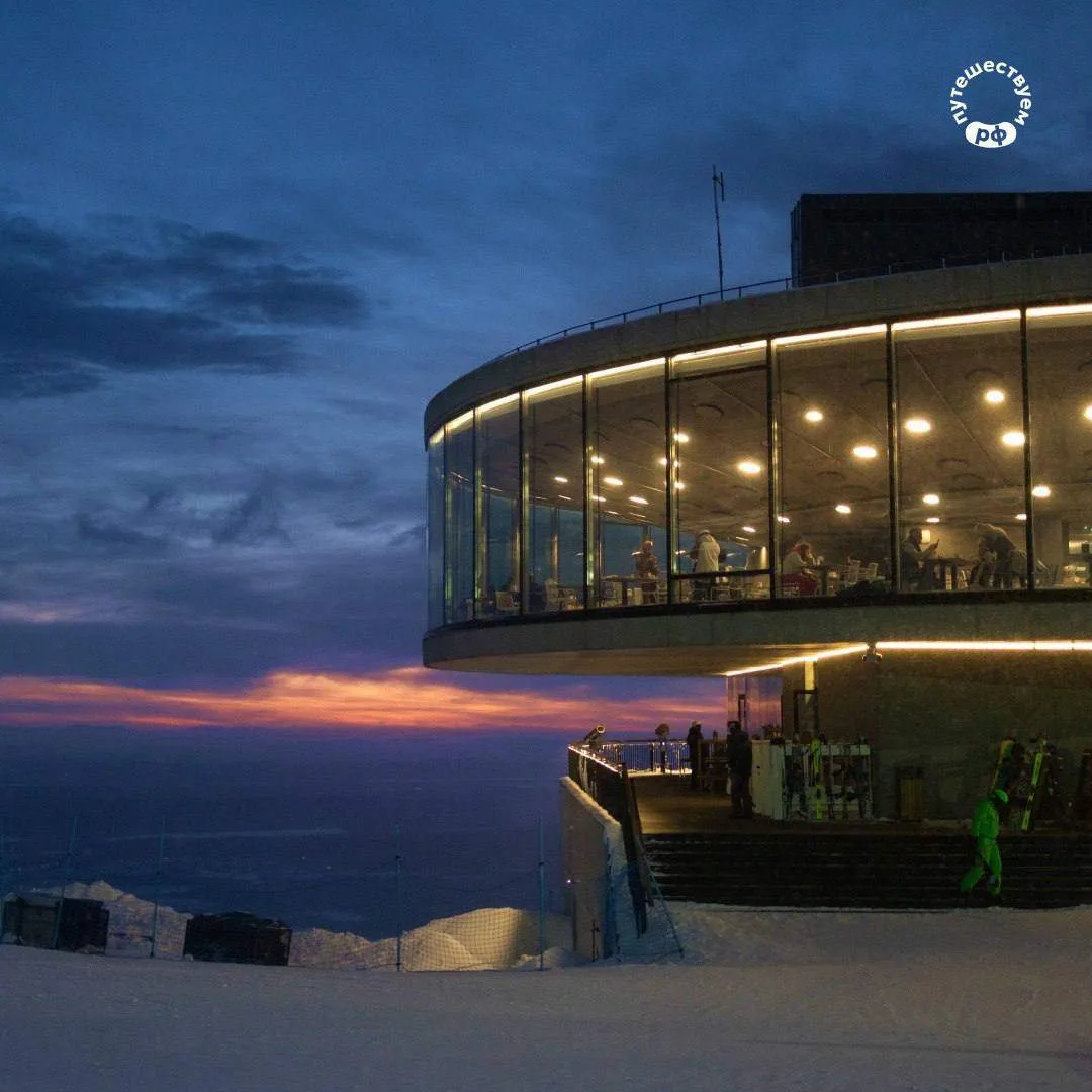 *️⃣ Ресторан «Плато». Попробуете копченого палтуса, салат с гребешком и кольскую уху, а на десерт — брауни с белыми грибами или чизкейк с ягелем. Ресторан находится на горнолыжном курорте, на склоне горы Большой Вудъявр. Из панорамных окон открываются эффектные виды на Хибины, а конструкция здания создает ощущение, будто вы парите над вершиной.