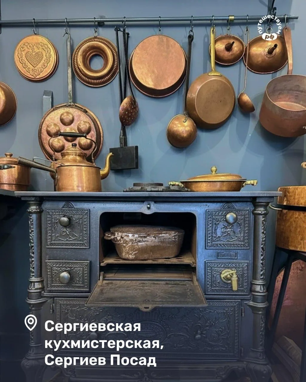 🍲 Сергиевская кухмистерская, Сергиев Посад. Гастрономическое путешествие в XIX век: узнаете, как готовили без газа, воды и электричества — на чугунных плитах и с самоваром. В музее-кафе вы попробуете вкуснейшие блюда по старинным рецептам, посетите театрализованную экскурсию и научитесь делать ландрин — леденцовую карамель, которую можно съесть или сохранить на память.