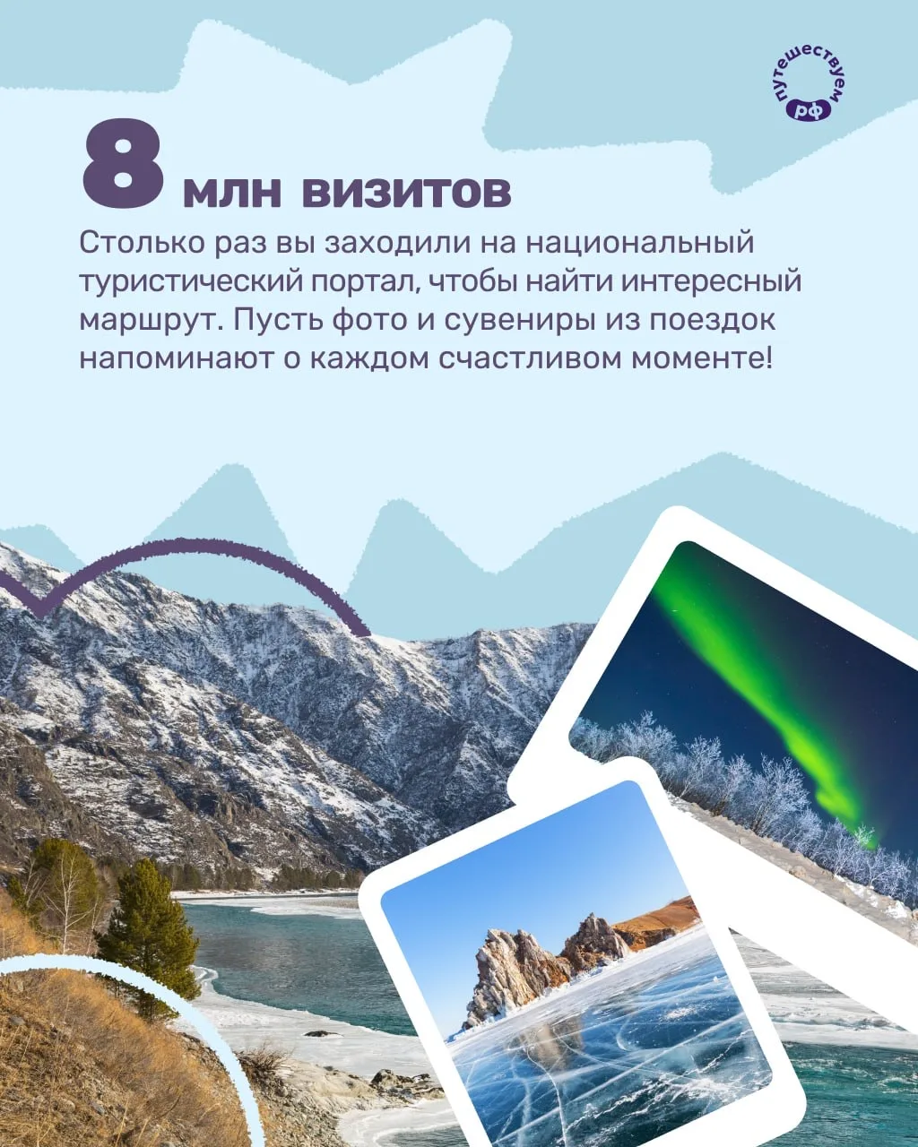 2025-й пролетел как яркое путешествие! Вместе с национальным туристическим порталом вы вдохновлялись на поездки и открывали новые маршруты: как это было — рассказали в карточках ☝🏻