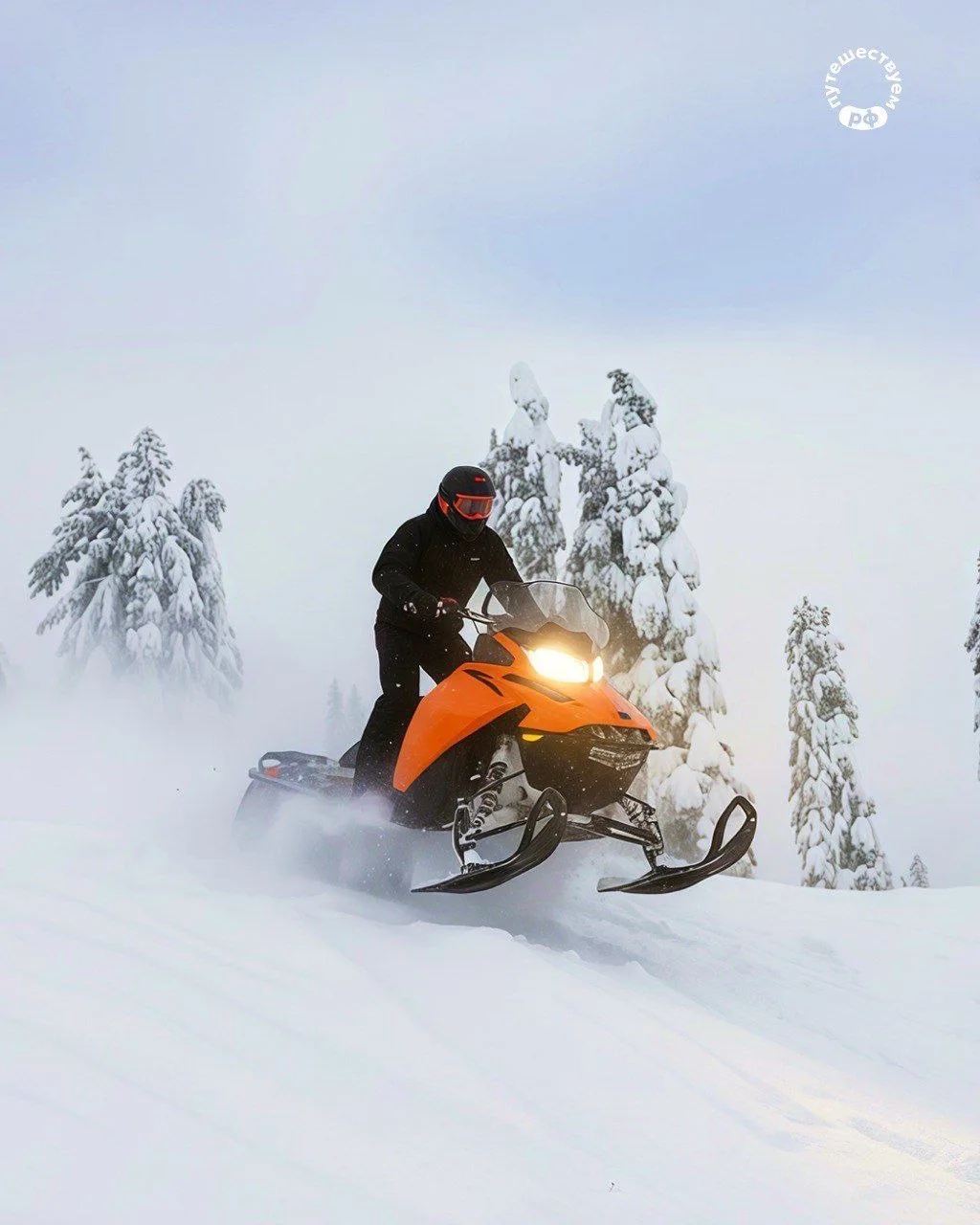 ✨ Отправляйтесь на прогулку на снегоходах. Вы побываете на озере Имандра, полюбуетесь видами Хибин и прикоснетесь к Камню желаний из местных легенд.