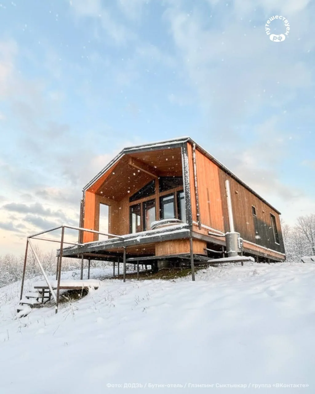 Снежные прогулки, горячий чай у камина и вечера, когда вся семья вместе — зима в Республике Коми будет теплой, если правильно выбрать глэмпинг 😼