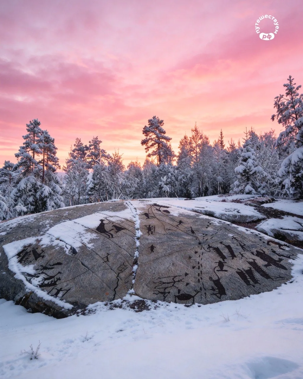 ✨ Посмотрите на петроглифы на Канозере. Киты, медведи, бобры, сцены охоты — здесь сотни наскальных рисунков возрастом до 6000 лет!