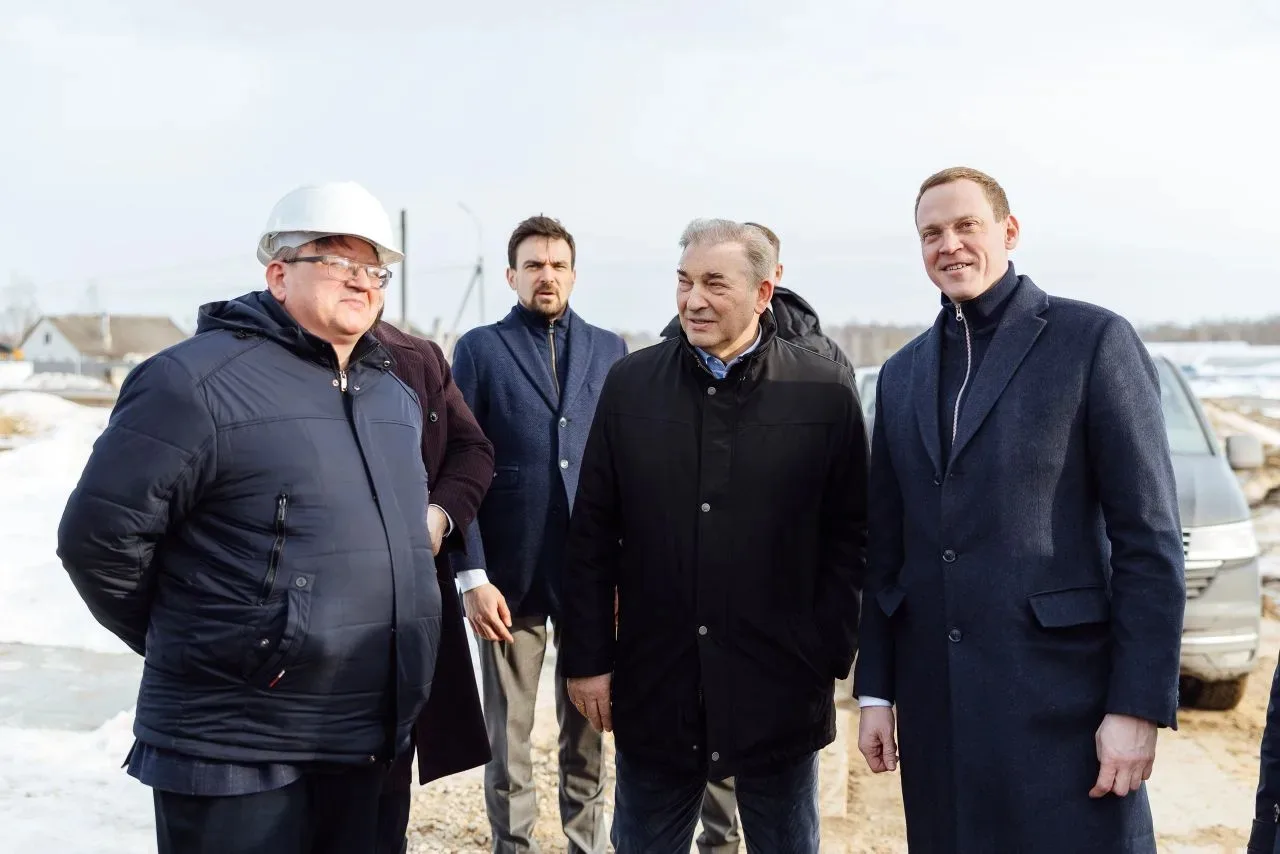Вместе с Владиславом Александровичем Третьяком заехали на стройплощадку крытого катка с искусственным льдом в селе Вослебово.