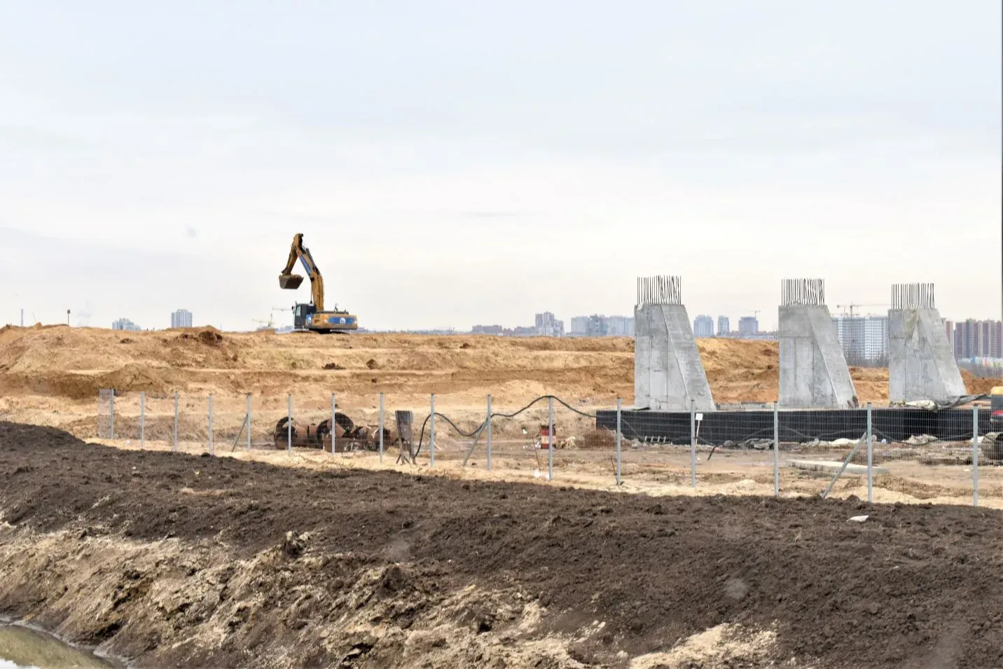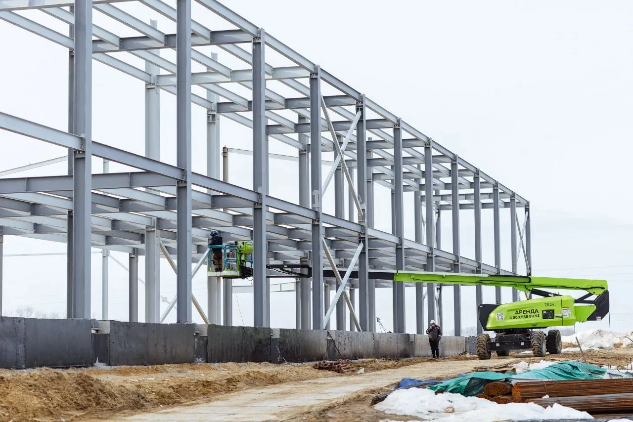 Работы идут по графику. Сейчас на площадке монтируют металлоконструкции и продолжают устройство фундамента.