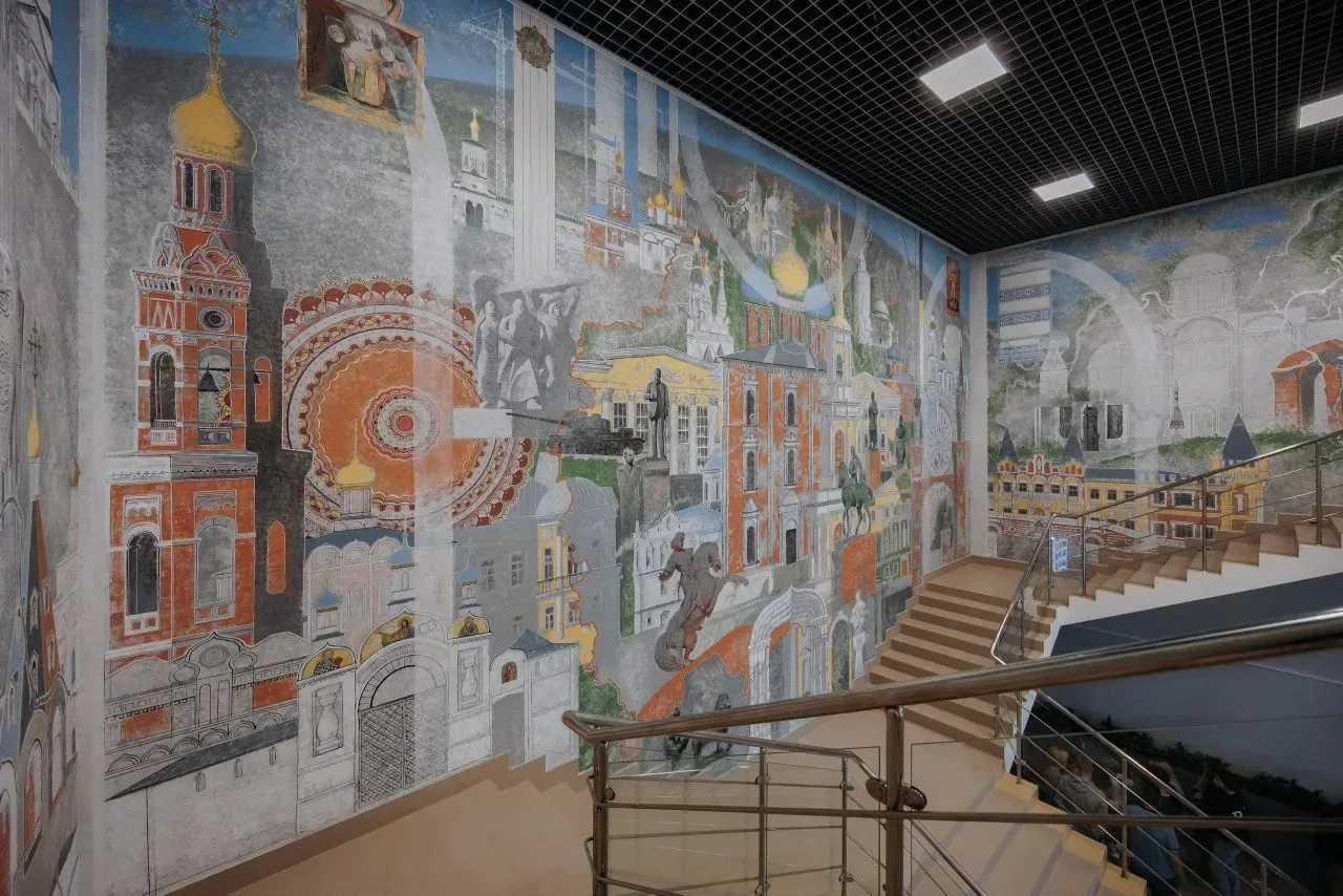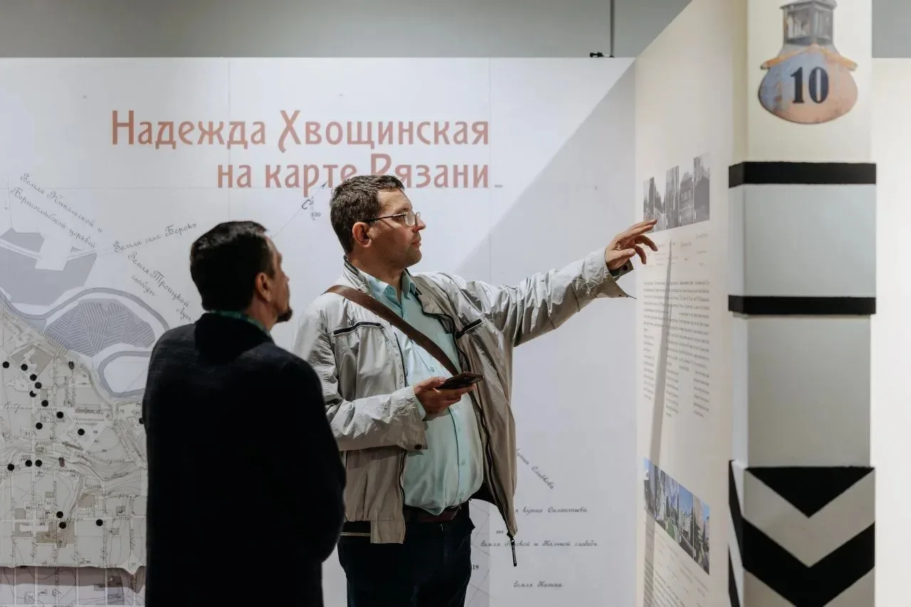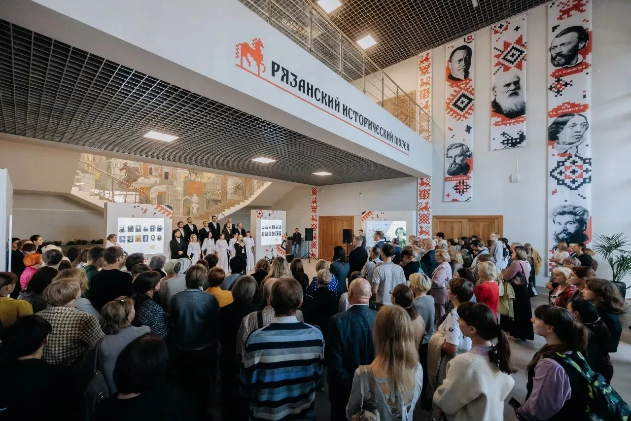 Символично, что именно сегодня в музейном центре открылся зал, посвящённый нашим великим землякам. На интерактивном стенде можно узнать о жизни и достижениях выдающихся рязанцев. А на стене зала большое художественное панно, посвящённое Рязанской области — можно очень долго рассматривать его детали.