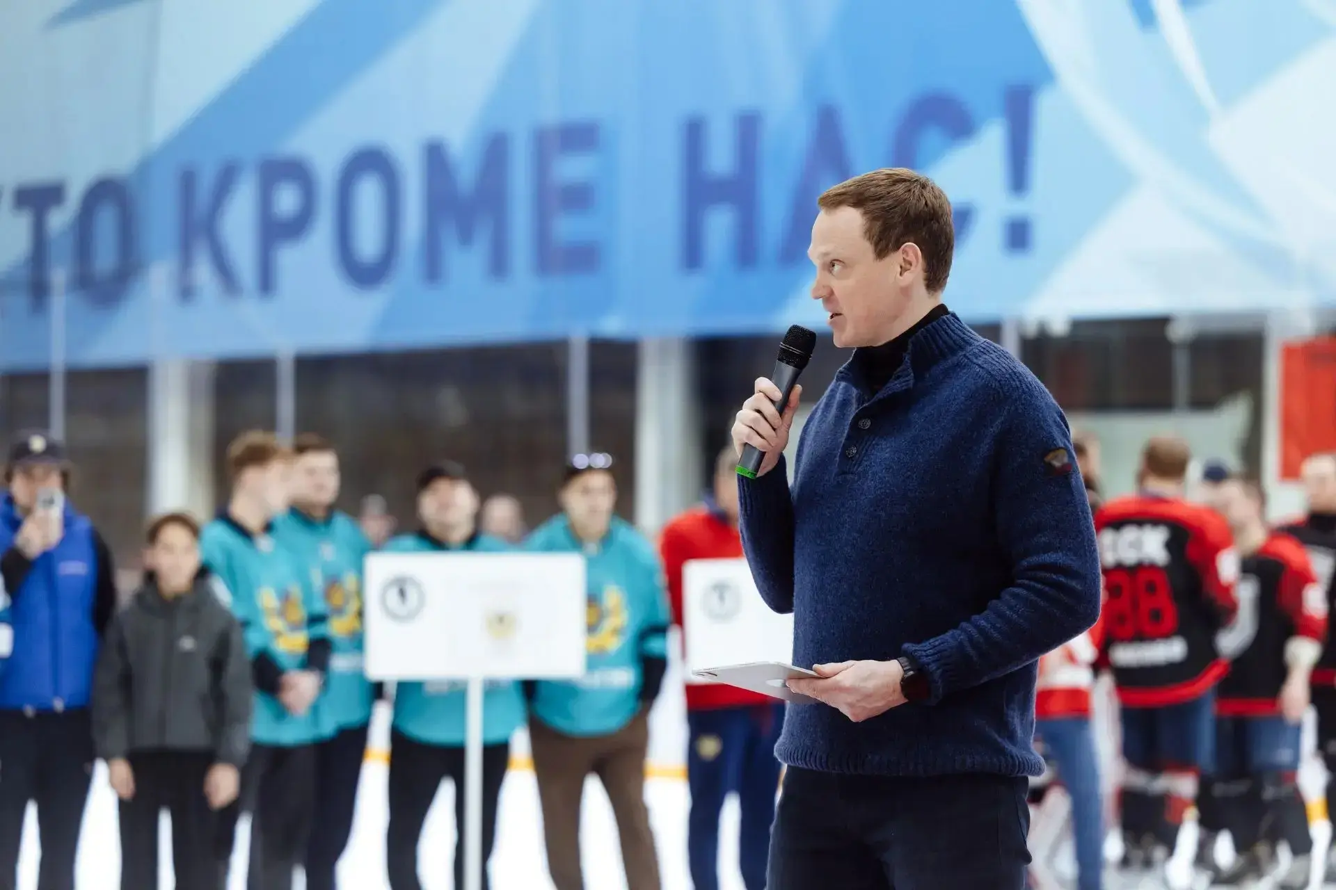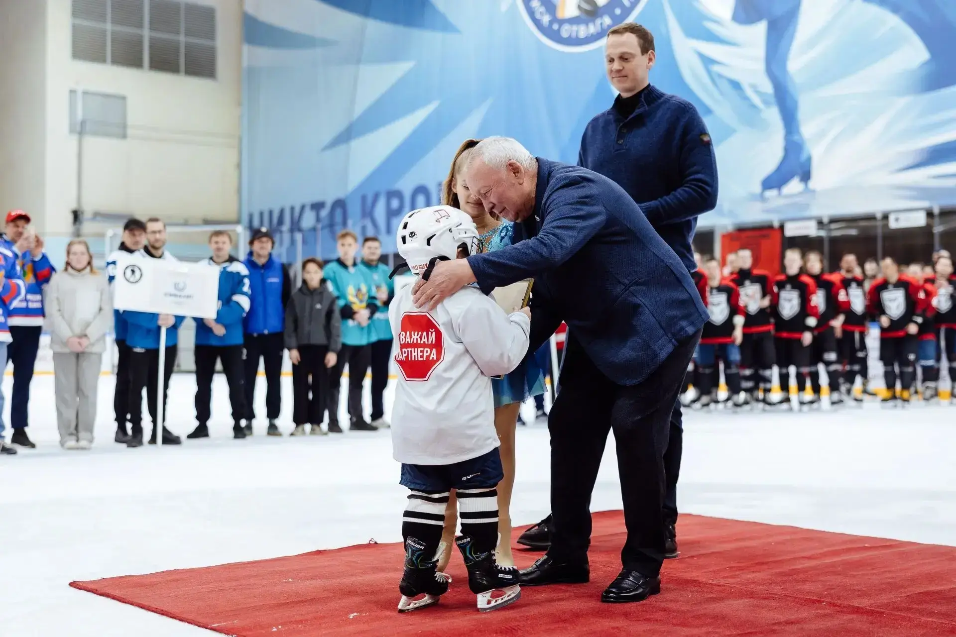 Сделали это вместе с Владиславом Александровичем Третьяком, который лично приехал на открытие. Легендарный хоккеист, трёхкратный олимпийский чемпион и президент Федерации хоккея России многое делает для развития спорта в нашей стране. Благодарю его за поддержку проекта.