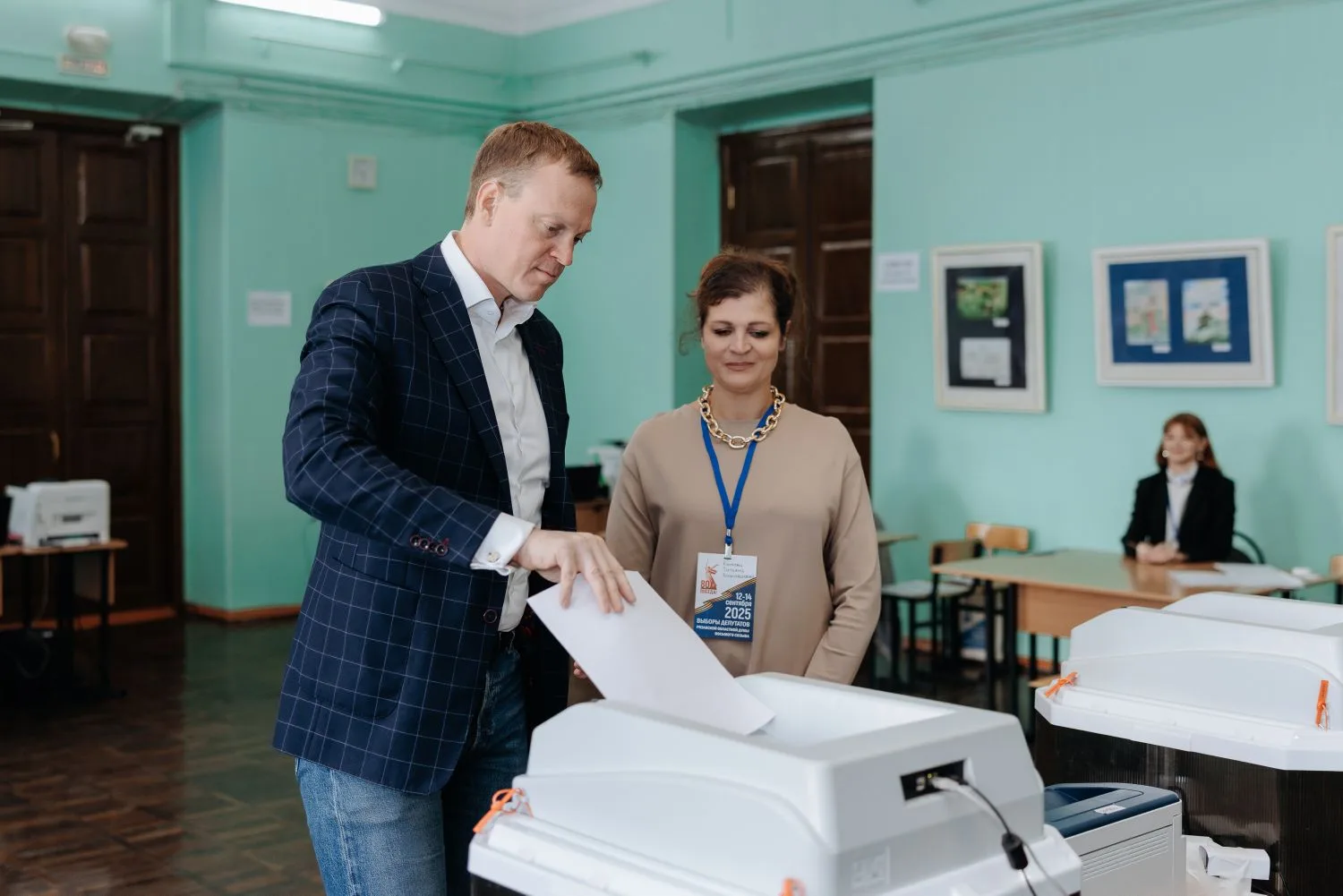 Проголосовал на избирательном участке в школе №7 в Рязани