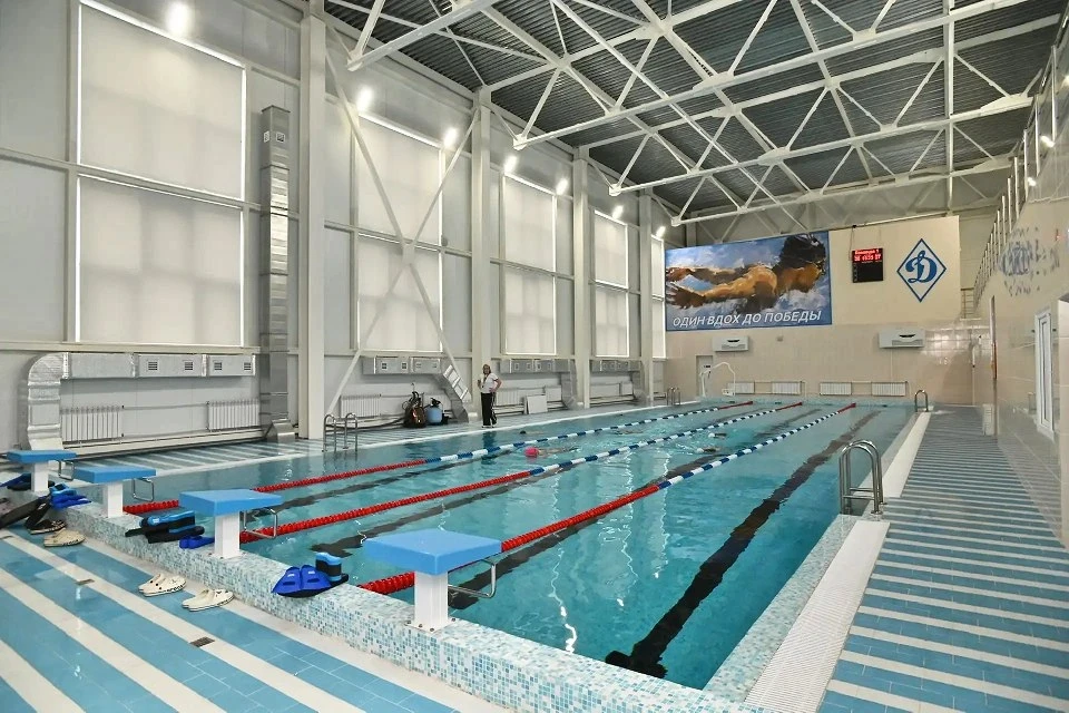 25-метровый бассейн, универсальный зал для игровых видов спорта, три малых спортивных зала. Современный медкабинет, тренерские и методические кабинеты. Для посетителей — удобный гардероб, буфет и большая парковка. Привели в порядок прилегающую территорию и подъездные дороги.