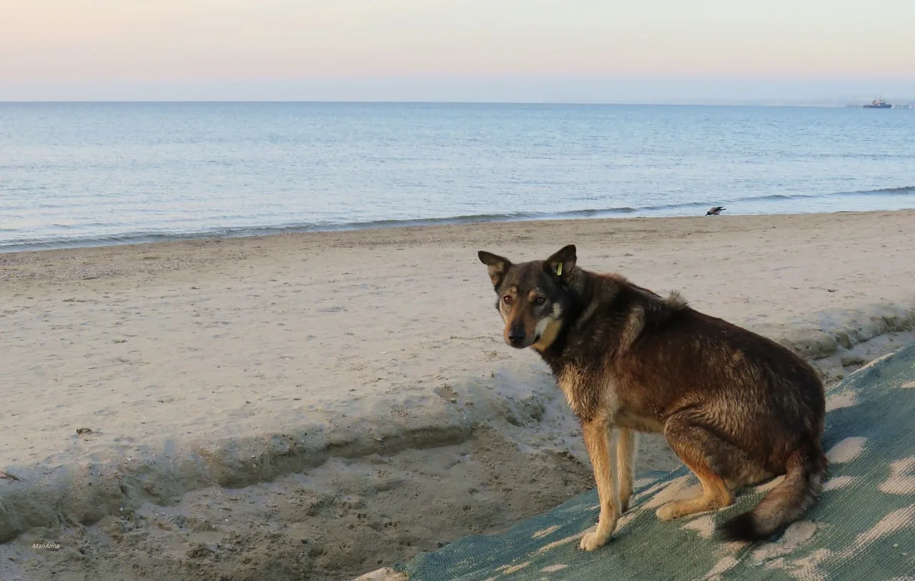 Берег чистый, но ходят люди в защитных костюмах с лопатами