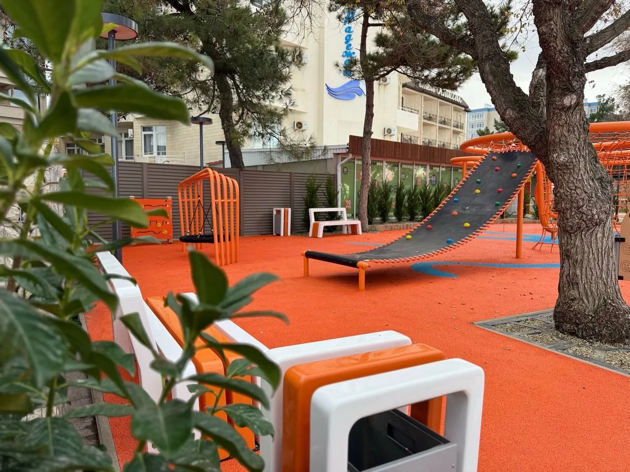Ключевой элемент площадки — большая канатная конструкция в форме осьминога протяжённостью почти 20 метров. Она предназначена для активных игр и развития координации.
