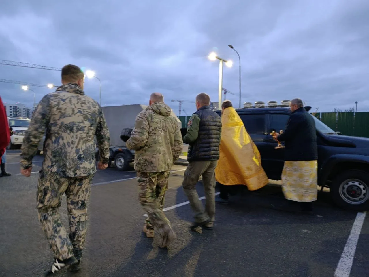 💪 Ранним утром гуманитарный караван анапских казаков стартовал с важной миссией от Храма князя Владимира, получив благословение священника.