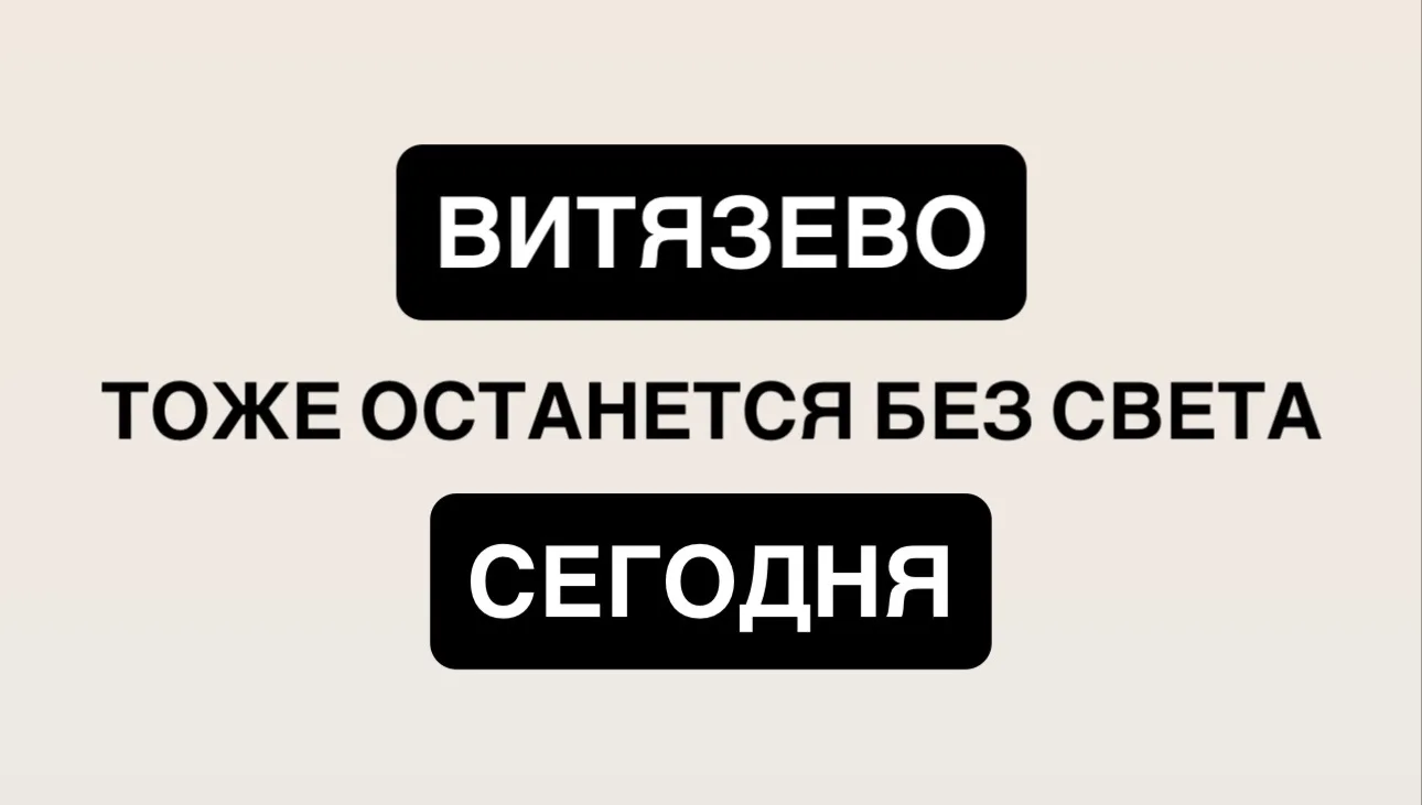 ВИТЯЗЕВО ТОЖЕ СЕГОДНЯ БУДЕТ БЕЗ ЭЛЕКТРИЧЕСТВА