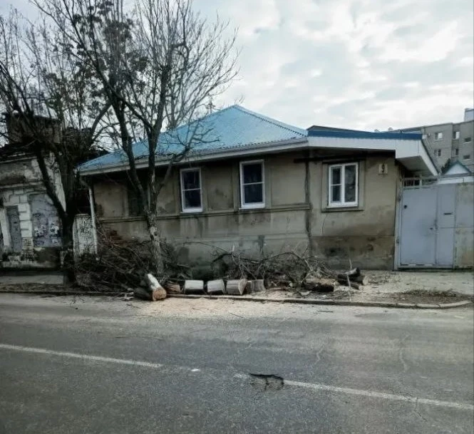 Продолжаются работы по уборке упавших от сильного ветра веток и деревьев. Улица К. Либкнехта, 9