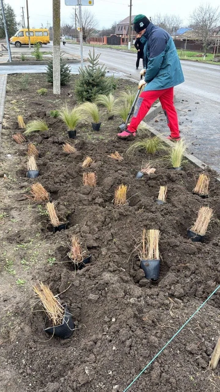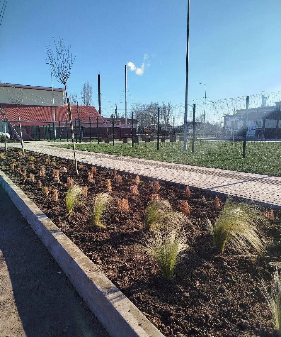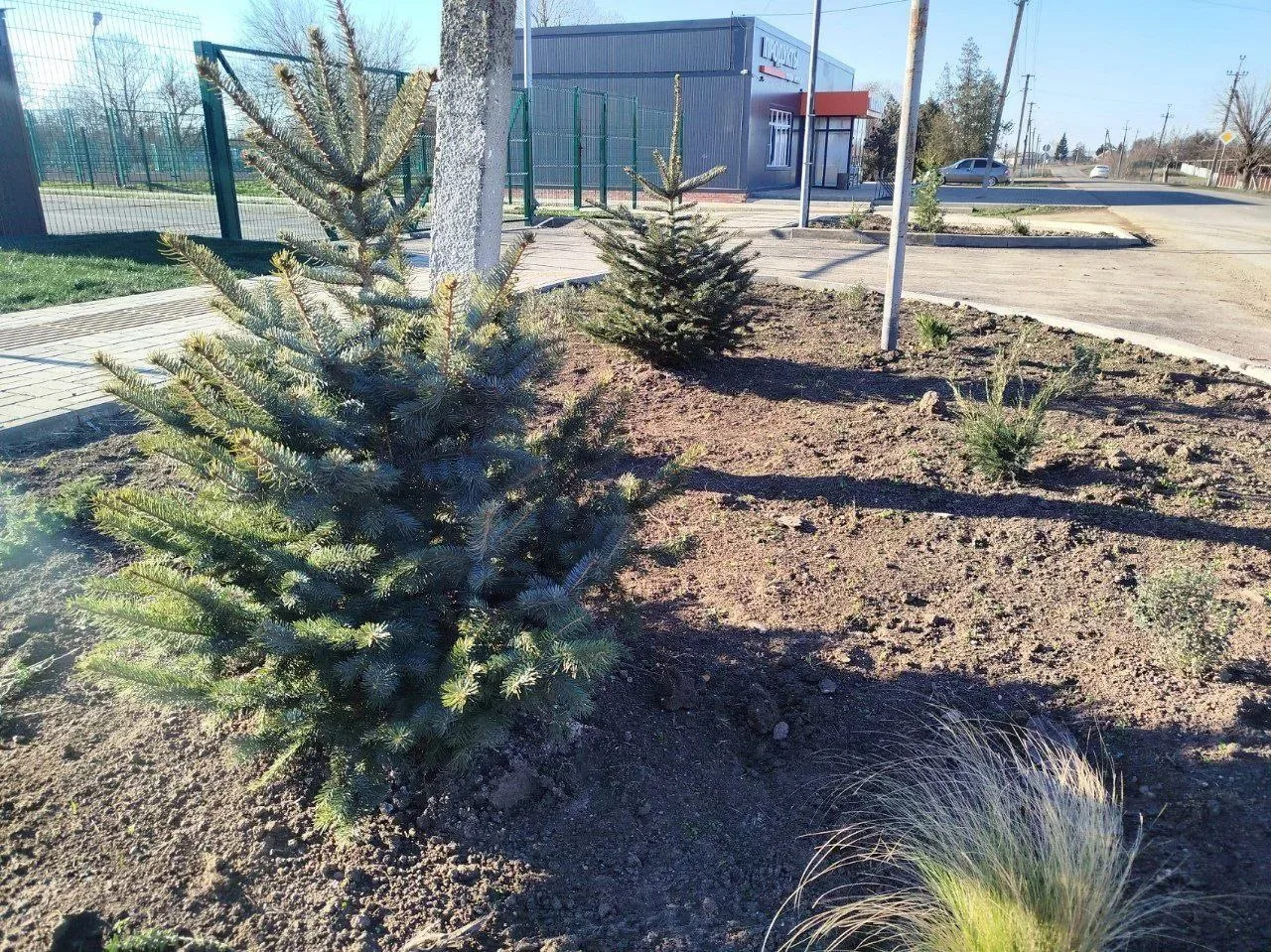 Планировалось, что новоселы: злаки, дубровник, можжевельники и даже декоративные деревья будут радовать глаз на палисаднике. Но, почти сразу после высадки, кто-то вырвал растения с корнем.