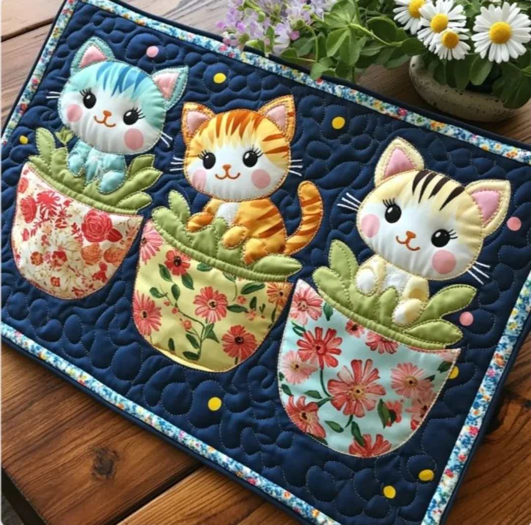 Котики в лоскутном шитье.