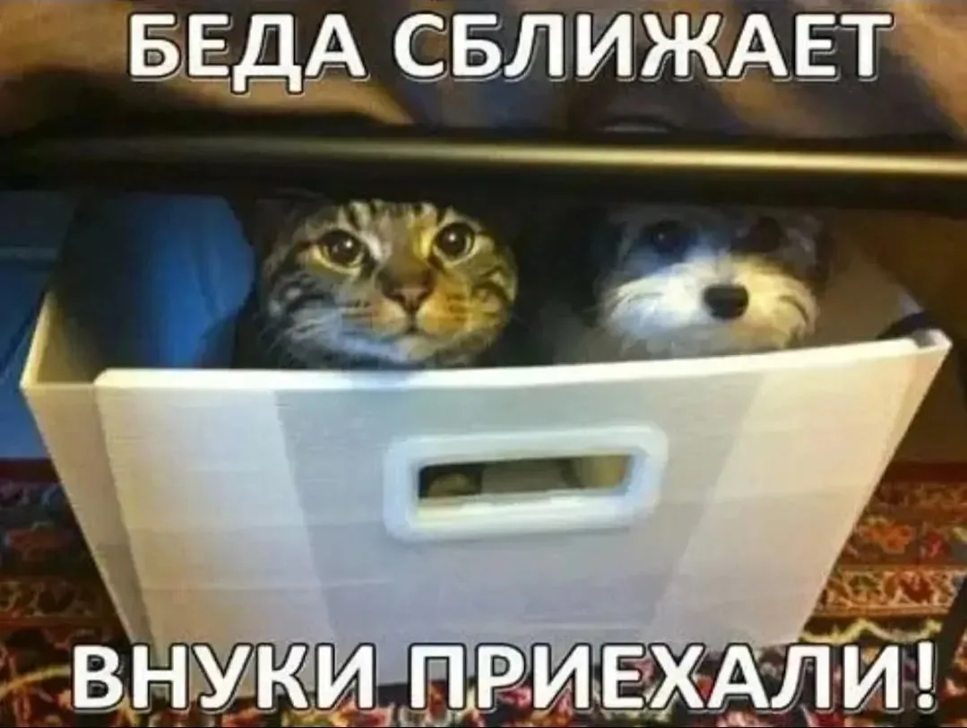 🫠И жили они как кошка с собакой и прятались вместе)))