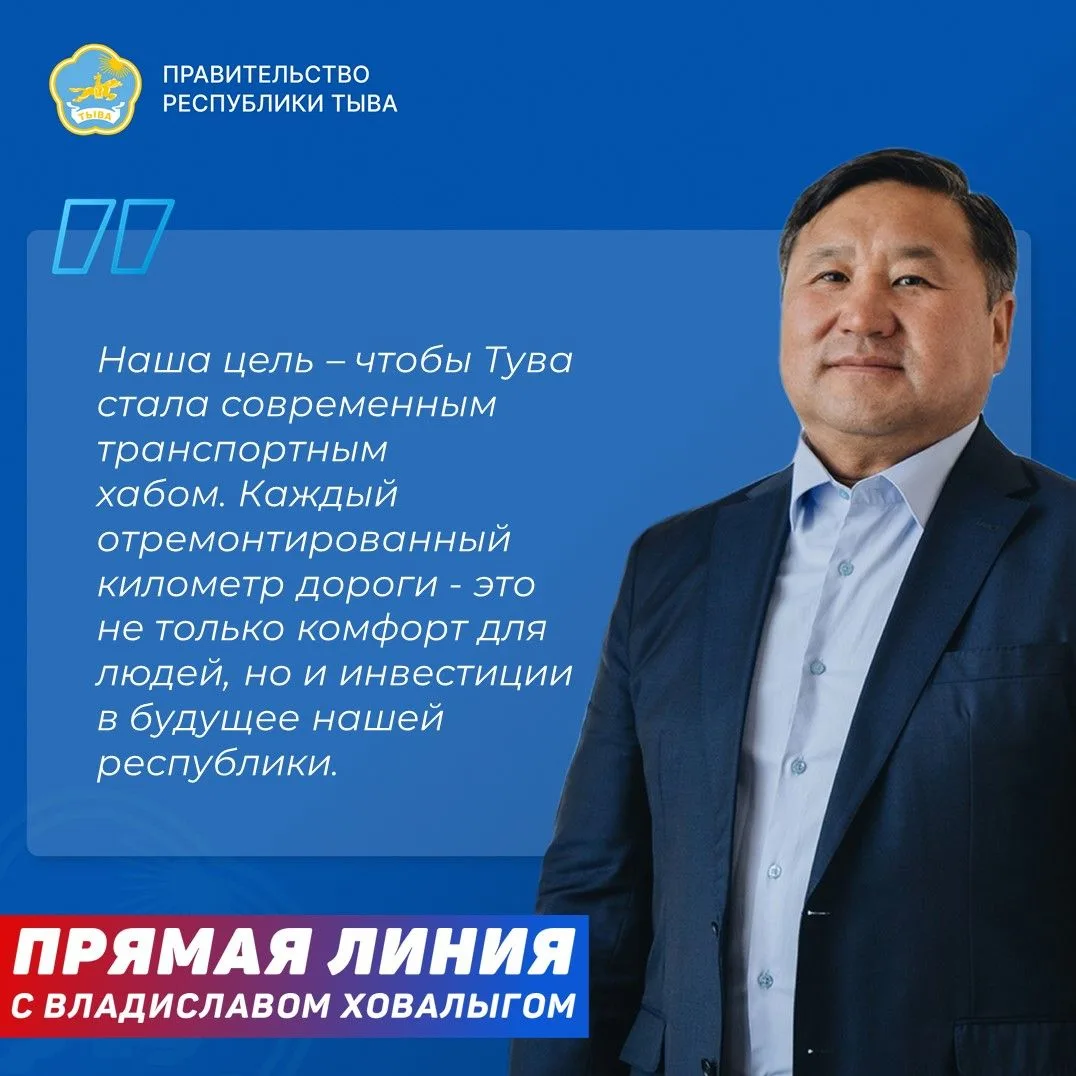 ❓ Большое количество вопросов в ходе прямого эфира Главы Тувы поступило от жителей Пий-Хемского района республики. Многие из них, пользуясь возможностью, присылали слова благодарности в адрес Владислава Ховалыга и Правительства региона за строительство дороги «Туран - Аржаан». Вместе с тем, жители также интересовались уточнением сроков проведения капитального ремонта сельского клуба в селе Аржаан.