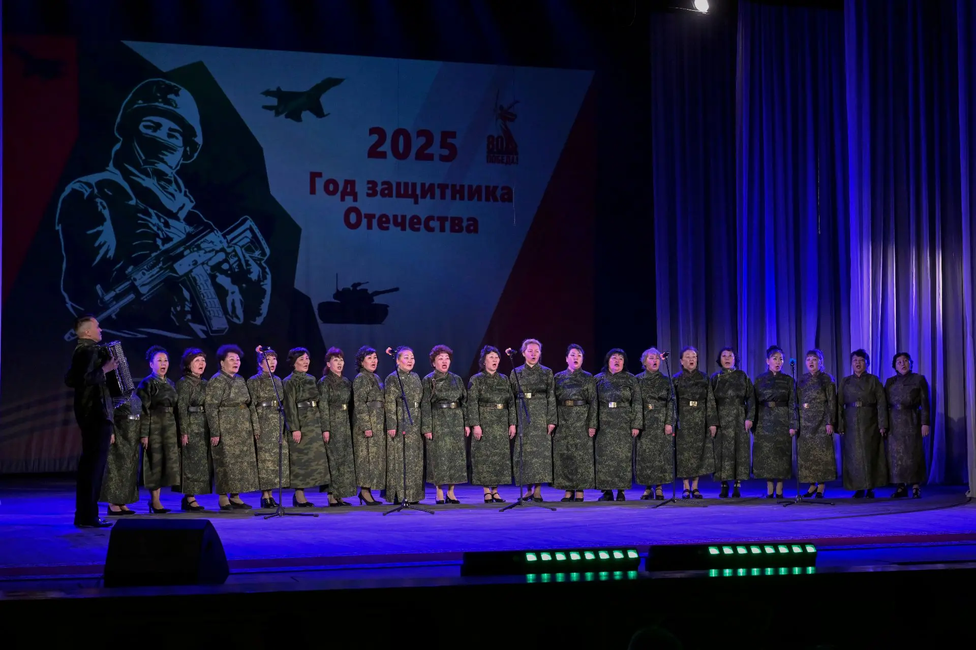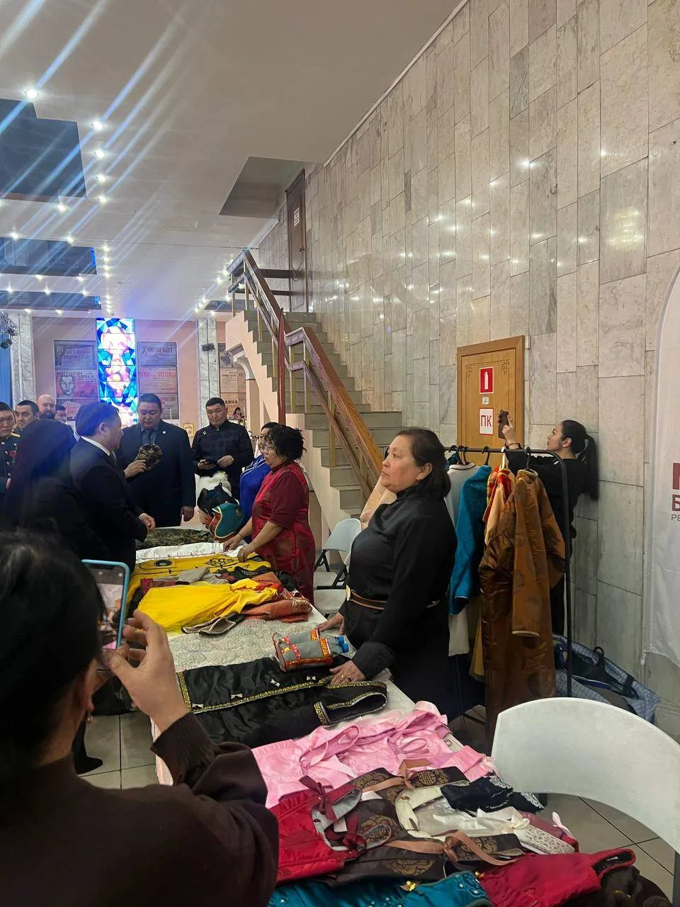 Гости и участники мероприятия погружались в торжественно-патриотическую атмосферу с первых минут нахождения в театре. В холле звучала живая музыка, которую исполняли музыканты военного оркестра 55-й мотострелковой бригады, а рядом развернулась выставка, подготовленная Министерством экономического развития республики совместно с филиалом Госфонда «Защитники Отечества». На нескольких площадках можно было ознакомиться с продукцией и изделиями, созданными участниками СВО и членами их семей, которые заключили социальные контракты на ведение бизнеса. Кроме того, в фойе театра можно было увидеть художественную экспозицию с картинами и портретами героев Великой Отечественной войны и специальной военной операции, выполненными известным тувинским художником Радомиром Балганом.