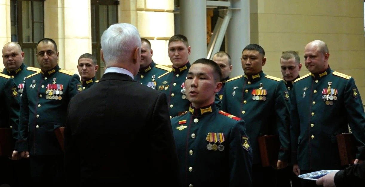 Министр обороны РФ Андрей Белоусов вручил медали «Золотая Звезда» отличившимся участникам специальной военной операции. В их числе звание Героя Российской Федерации получил 20-летний боец из Тувы с позывным «Кыргыз», уроженец села Кызыл-Даг Бай-Тайгинского района Найыр Кыргыс. Вместе с медалью министр обороны вручил героям именное оружие.