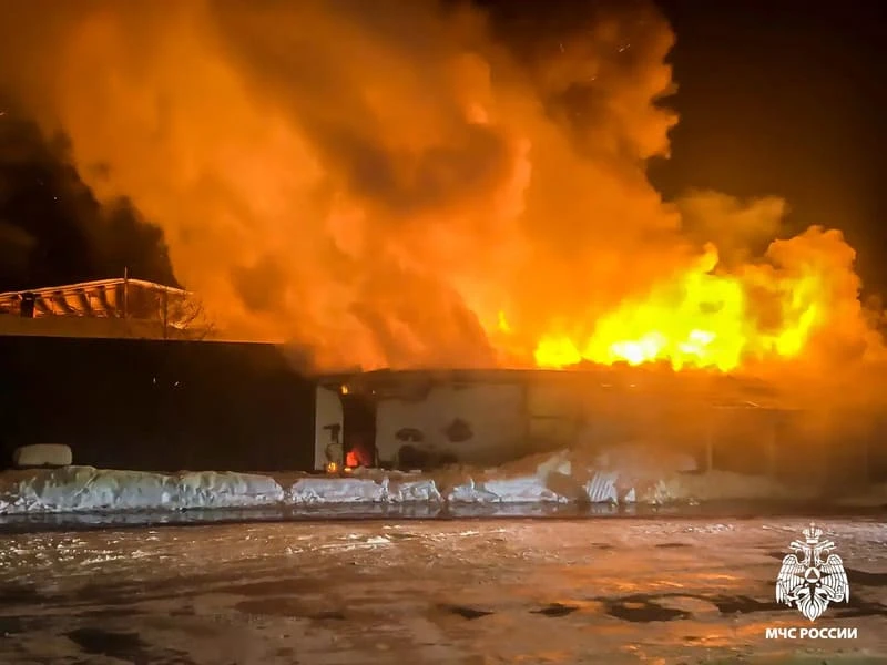 Мощный пожар вспыхнул на торгово-розничной базе в Смоленской области