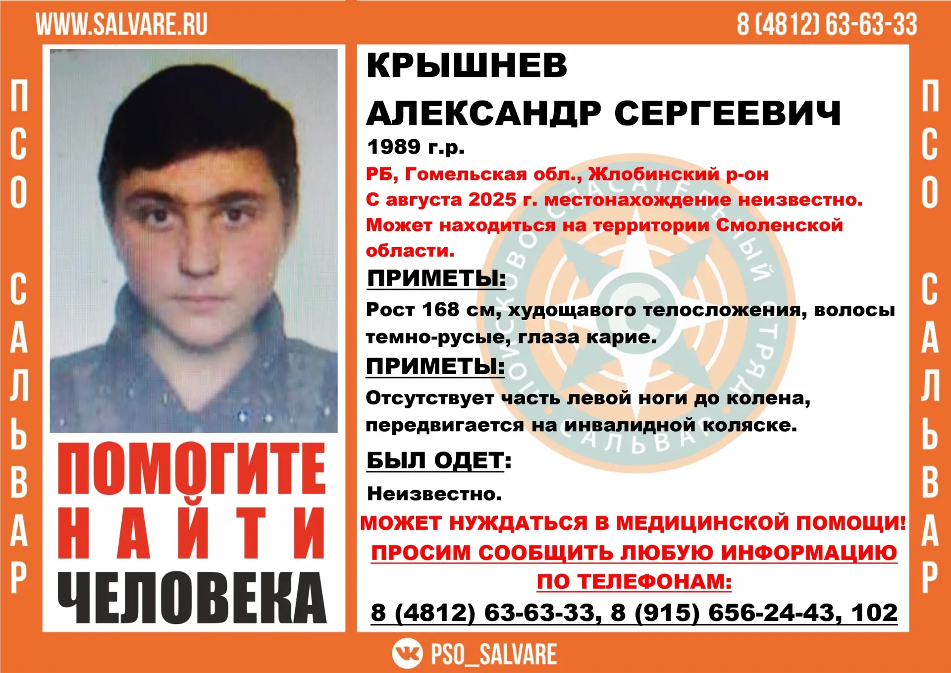 В Смоленске разыскивается 28-летний мужчина в синих кроссовках