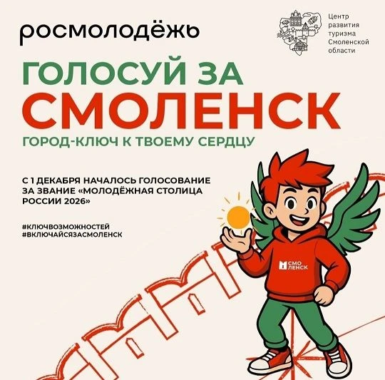 💝⭐Время выбрать молодежную столицу! В России проходит главный этап премии «Время молодых» - идёт открытое голосование за звания «Молодёжная столица России» и «Город молодёжи». От ЦФО участие принимают два города: Смоленск и Елец Липецкой области. Именно сейчас наши голоса способны определить, какие города России станут центрами молодёжных инициатив в 2026 году. Давайте объединим усилия и поддержим ЦФО!