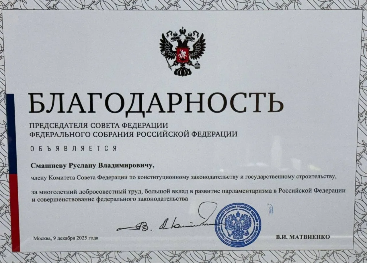 Смоленский сенатор Руслан Смашнев прокомментировал решение выйти из состава Совета Федерации