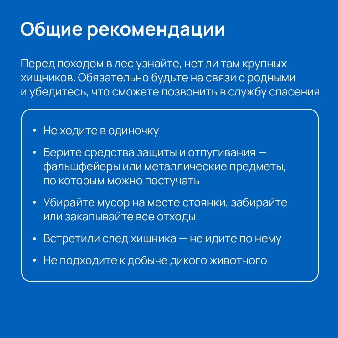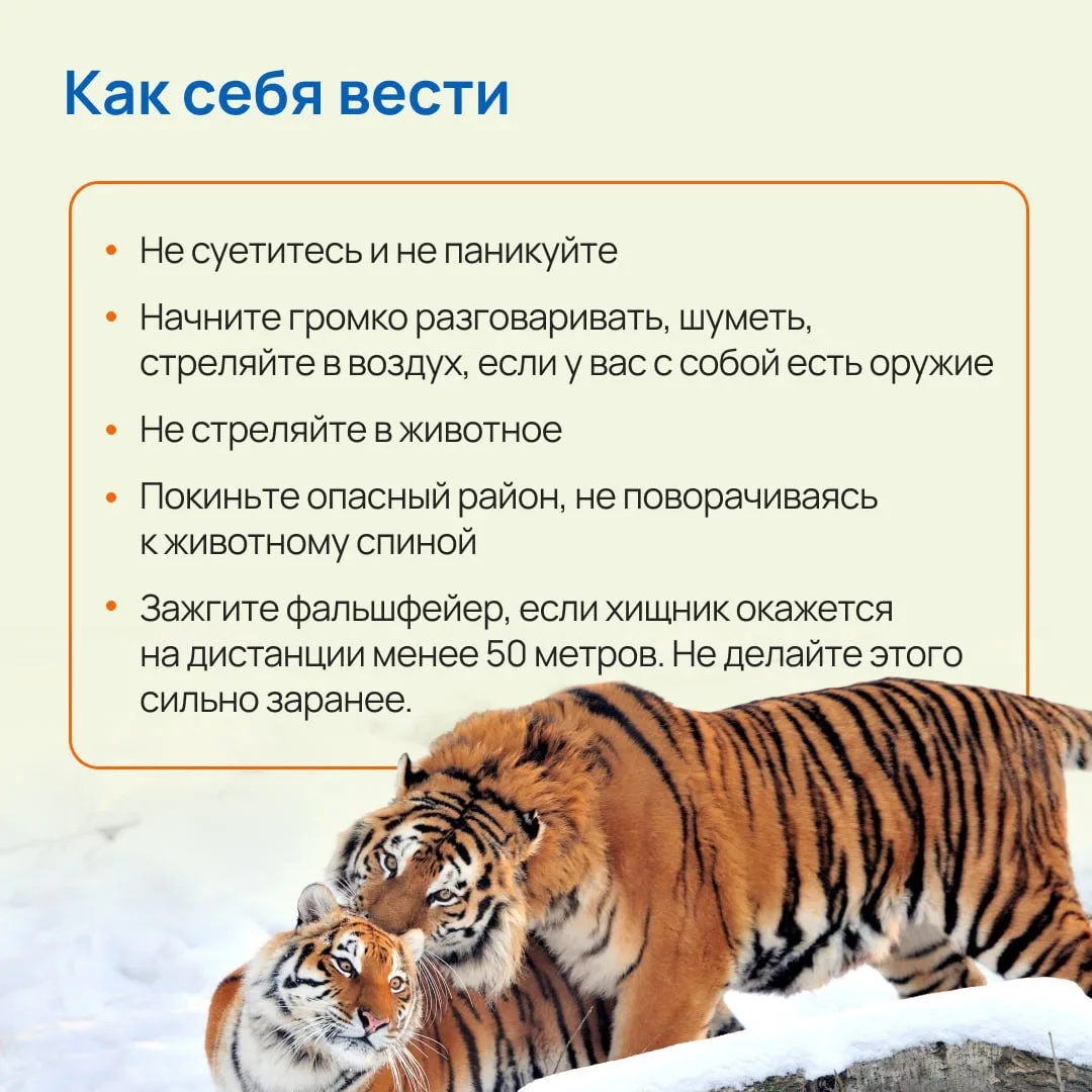 Вместе с нашими друзьями из Центра «Амурский тигр» подготовили рекомендации, как спланировать свой выход в лес и что делать, если вы встретили тигра или другого крупного хищника. Читайте наши карточки, сохраняйте информацию и соблюдайте меры предосторожности.