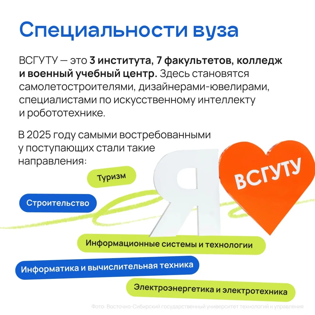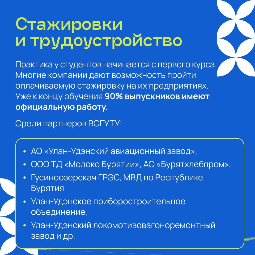 Знакомим с ВСГУТУ — в карточках. Больше информации для поступающих вы найдете на нашем сайте.