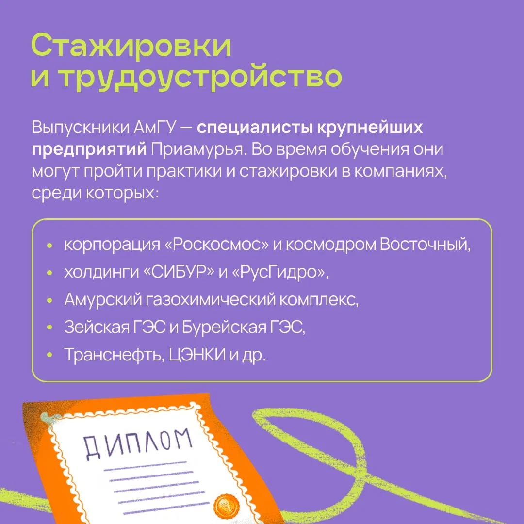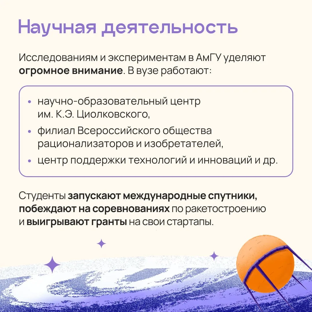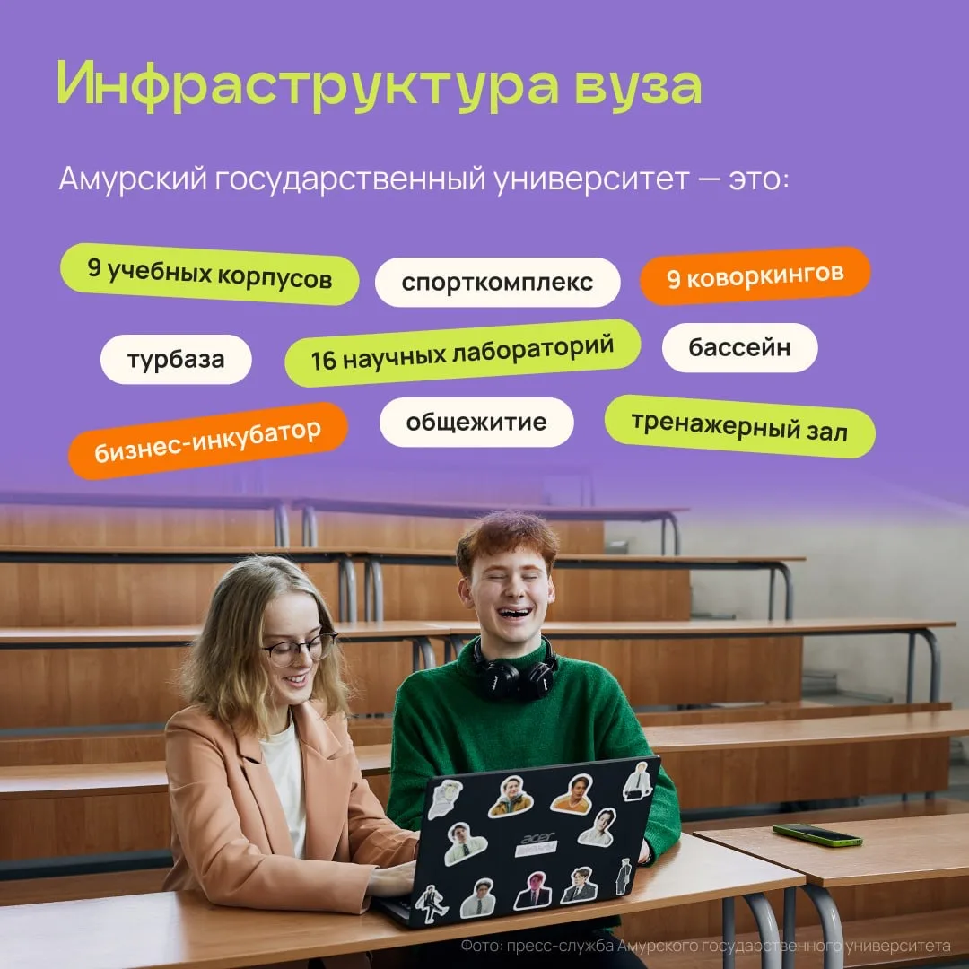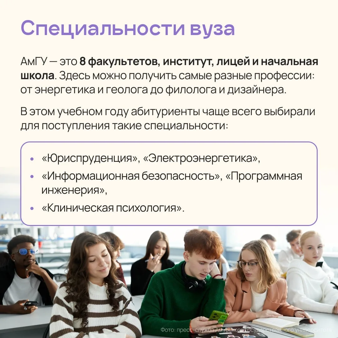 Знакомим с АмГУ — в карточках. Больше информации для поступающих вы найдете на нашем сайте.