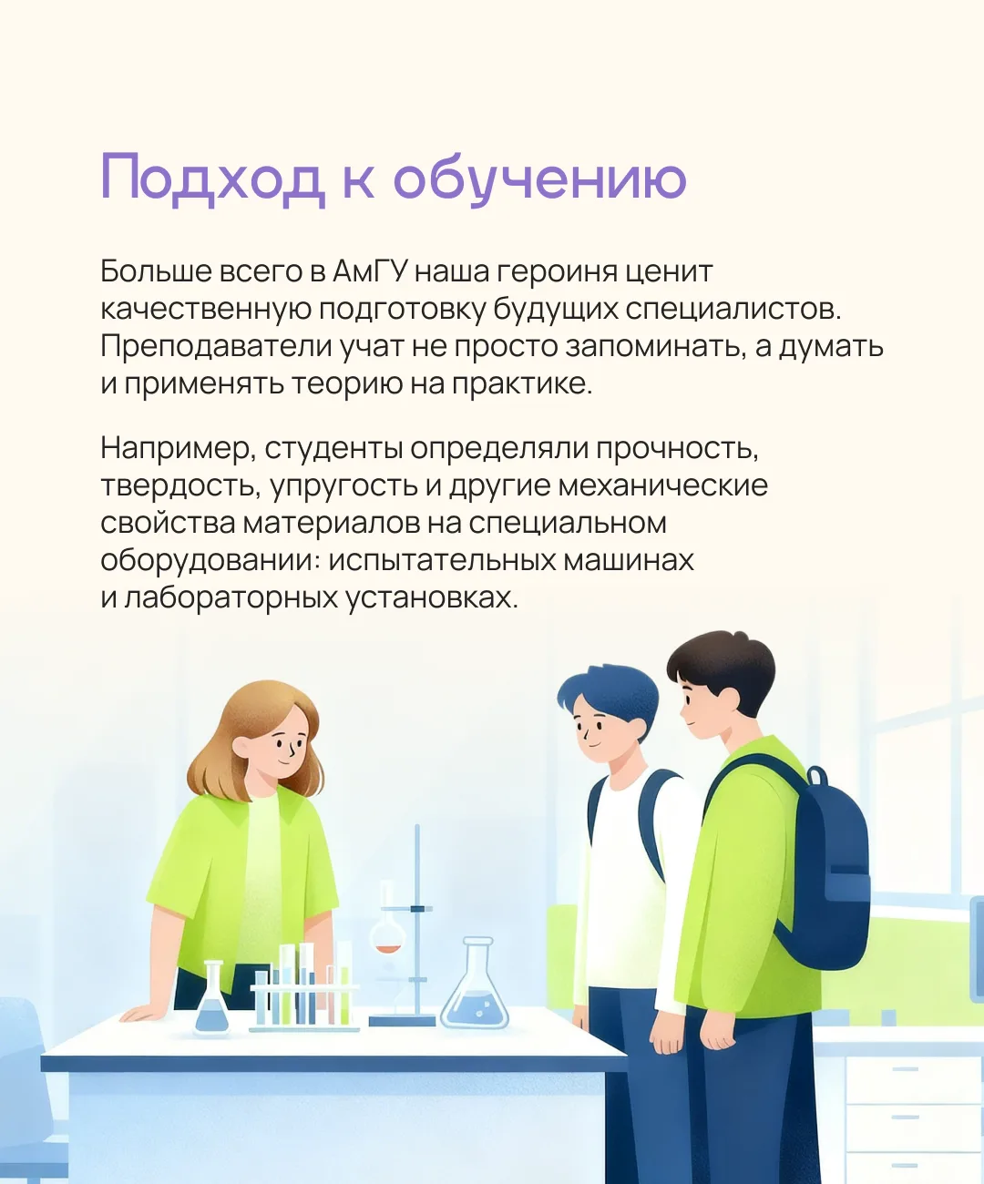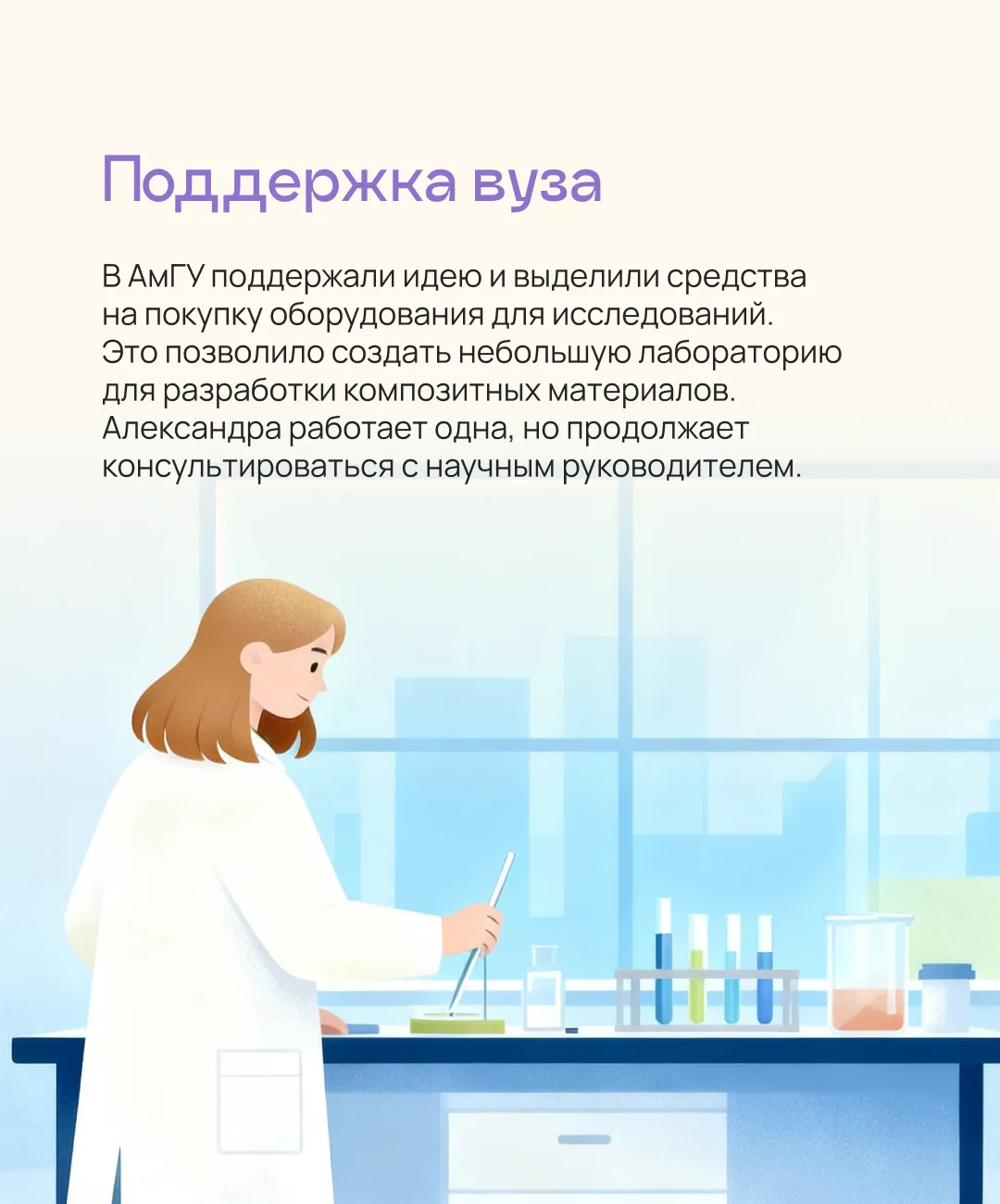 В карточках мы рассказали, как Александра смогла добиться таких успехов в науке и чем еще ей нравится учеба в АмГУ. Полное интервью вы найдете на нашем сайте.