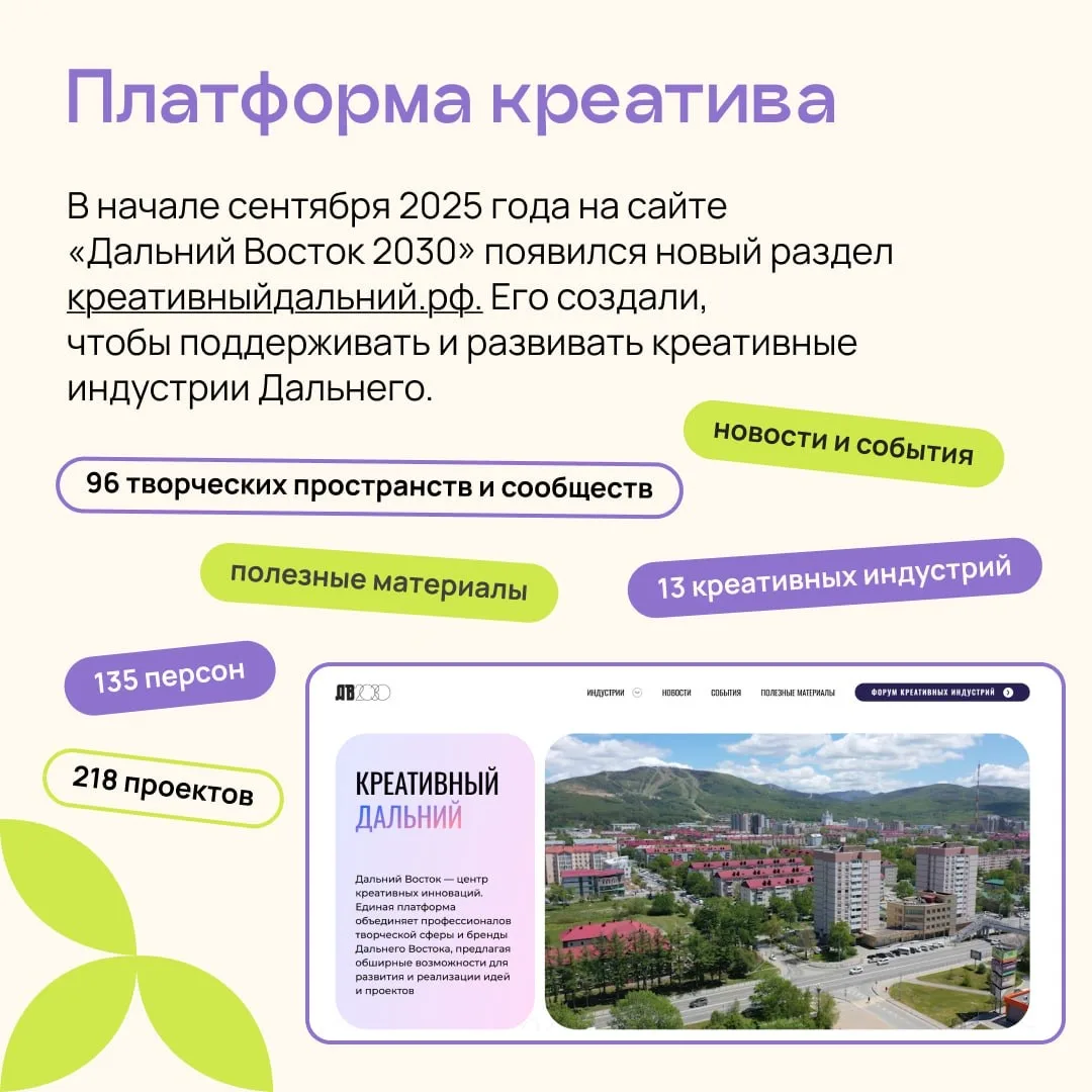 Музыка, кино, дизайн, анимация, архитектура и другие арт-индустрии — на портале «Дальний Восток 2030» появился новый раздел креативныйдальний.рф!