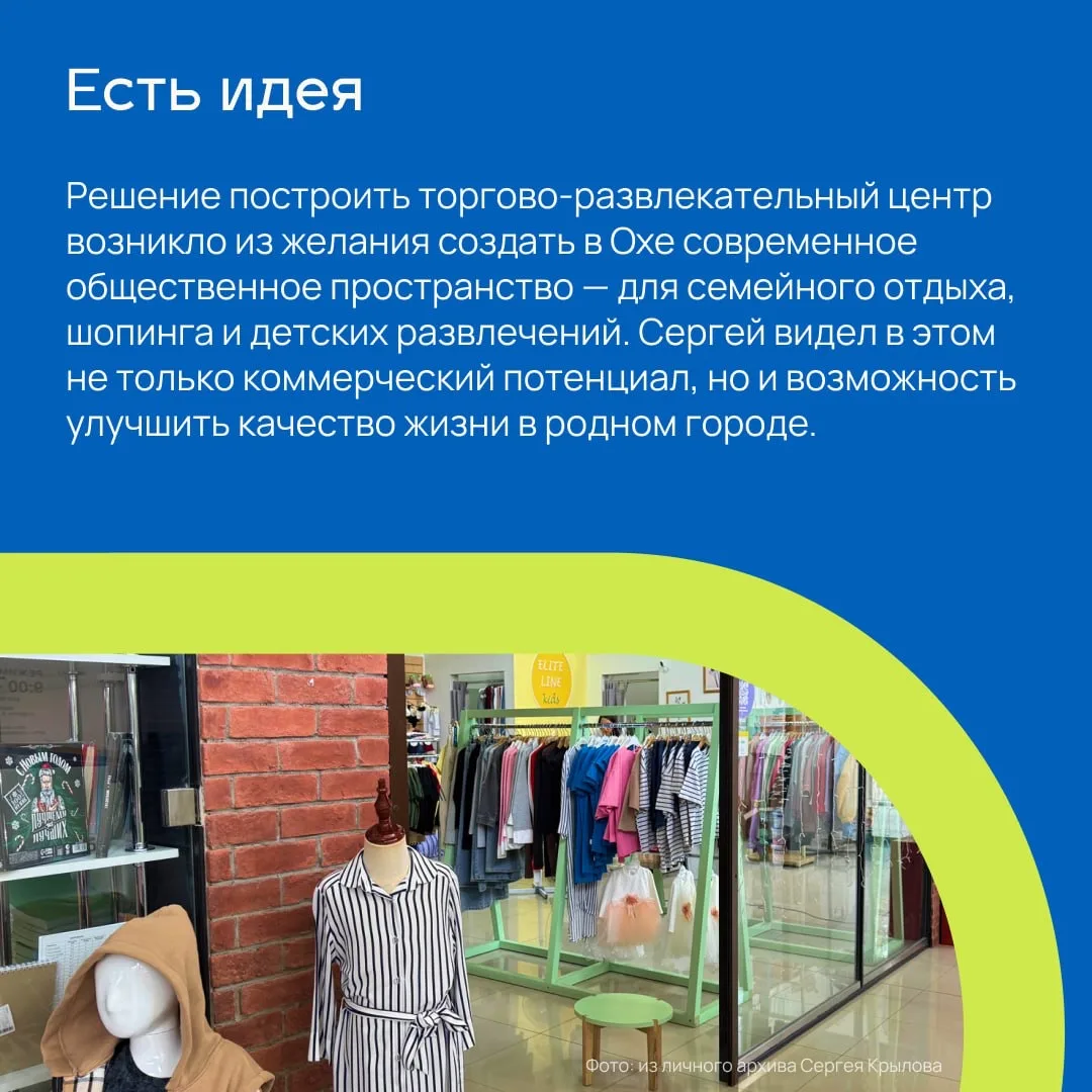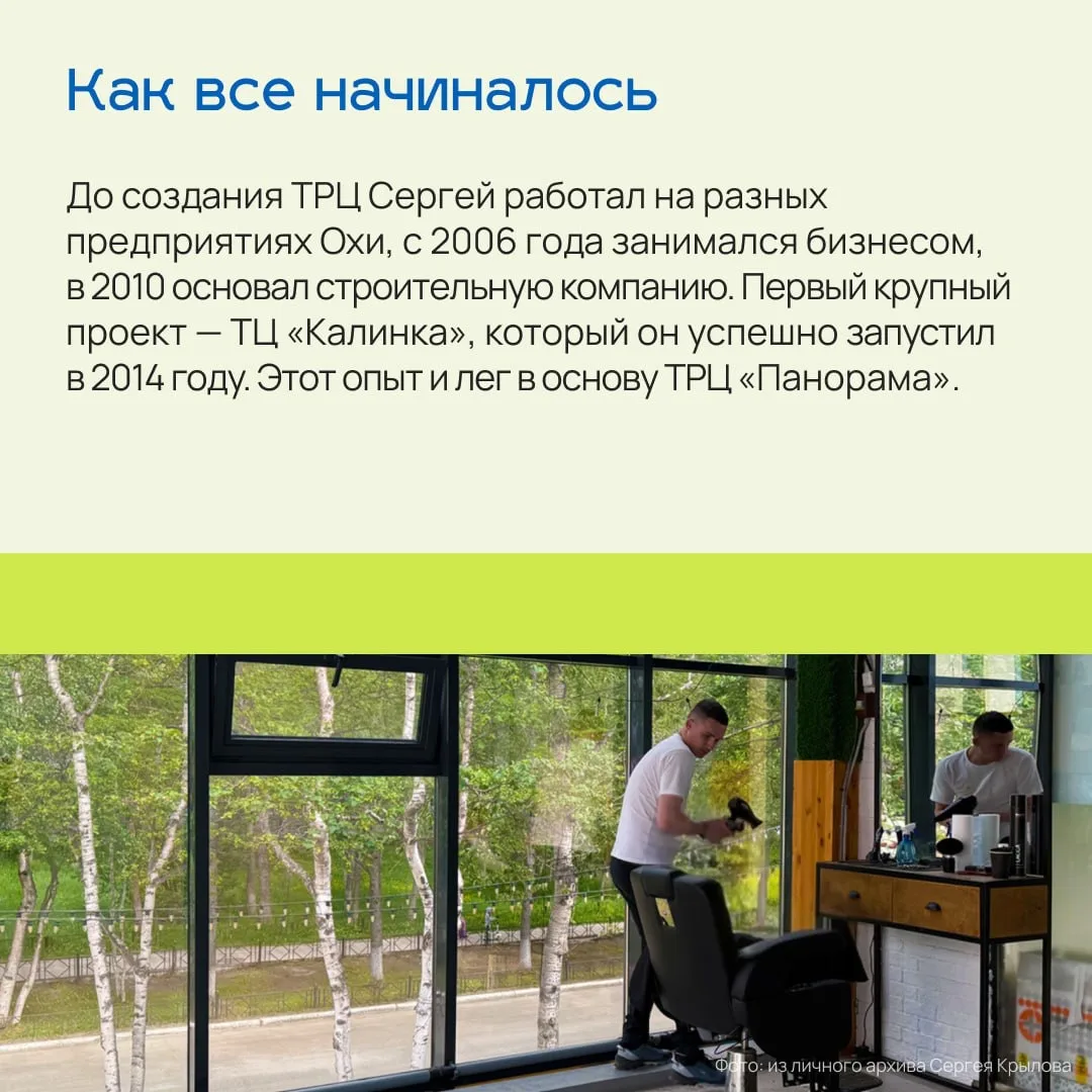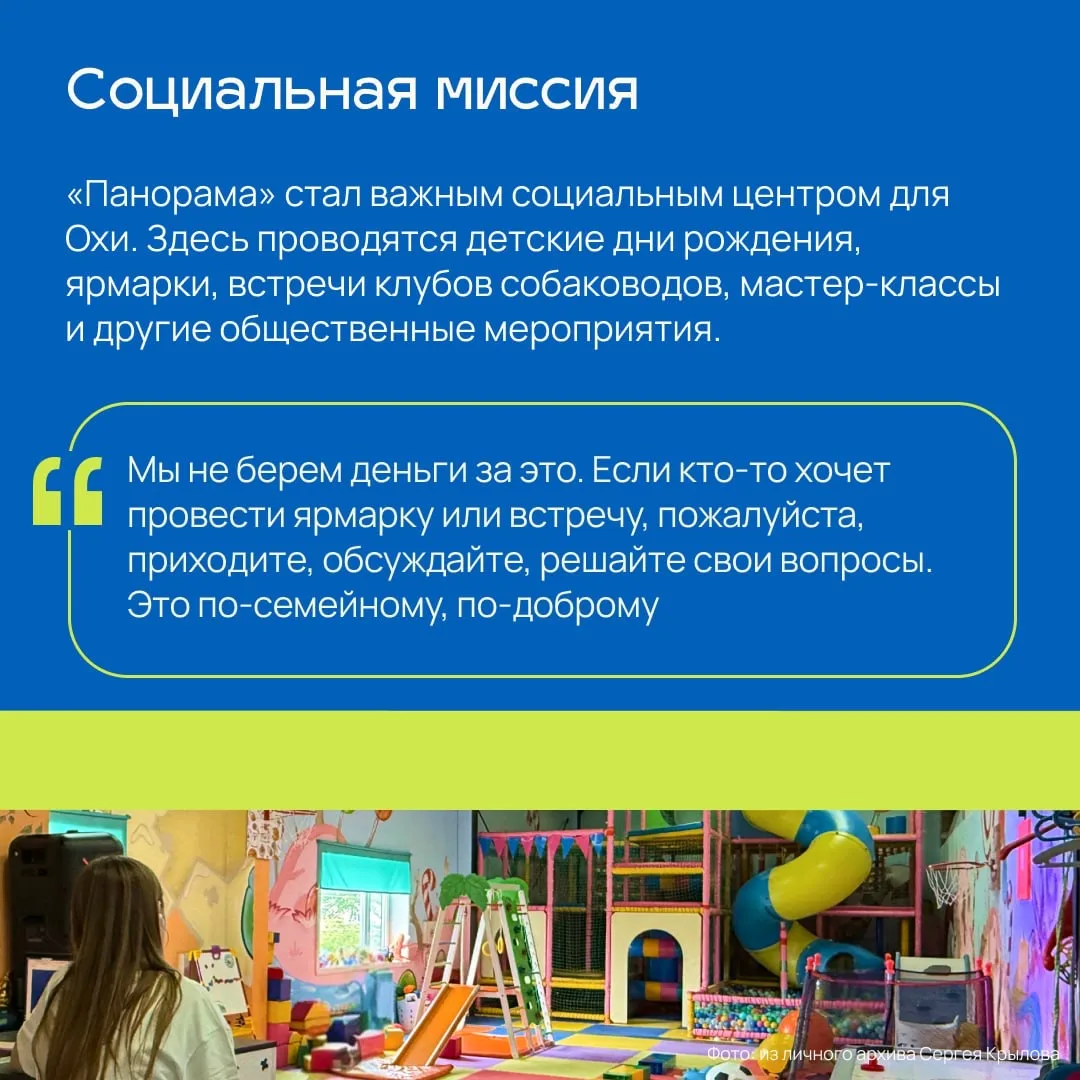 «Оха меня вырастила, воспитала, обучила. Я благодарный человек и хочу отдавать долг своему городу. Построить что-то полезное для людей — это моя мотивация», — предприниматель Сергей Крылов.