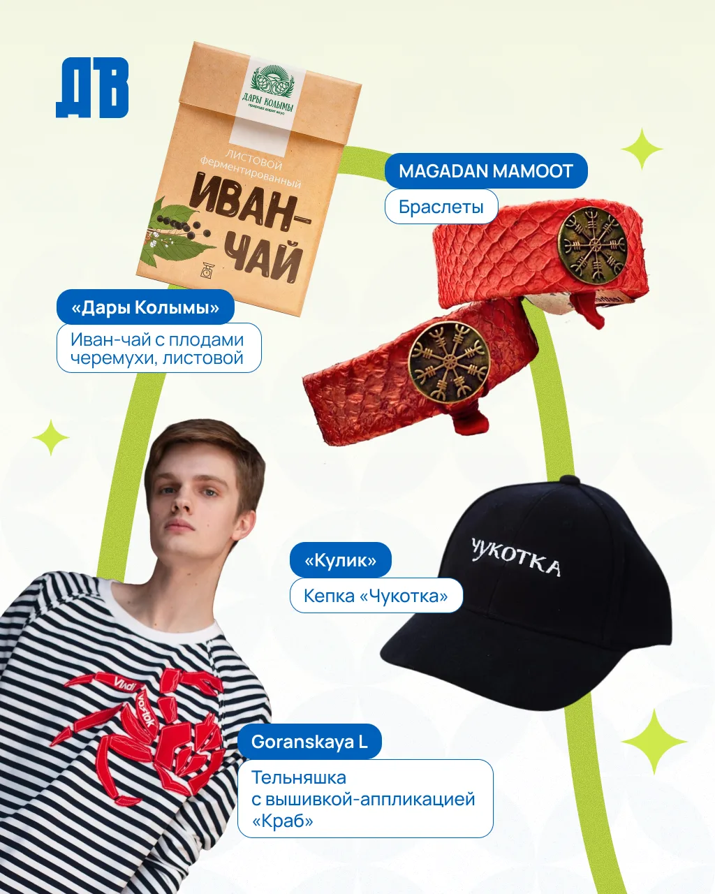 🔹 Аксессуары из кожи и черемуховый чай — из Магаданской области.