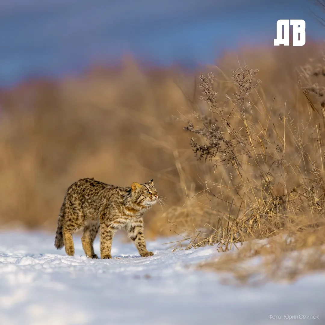Эти снимки автор сделал в Уссурийском заповеднике. На них — охота молодого дикого кота. Редкий хищник внесен в Международную Красную книгу. Несколько фактов о звере: