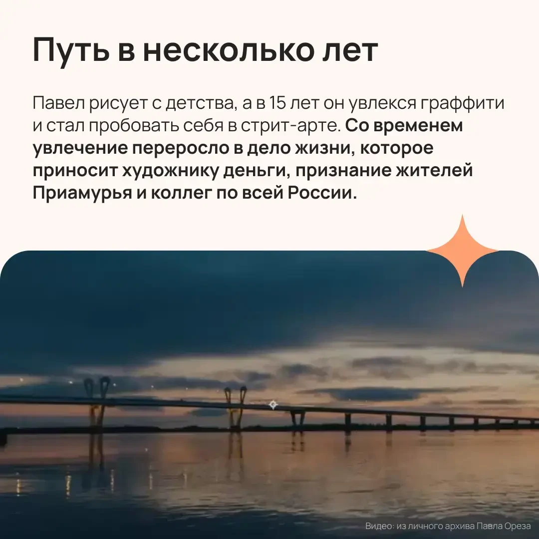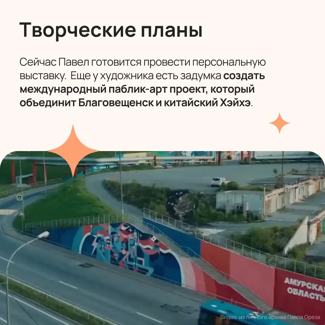 🎨 «Сейчас у нас город как конфетка. Хотелки художника, администрации и жителей дополняют друг друга. Радует, что я могу работать в том месте, где живу», — Павел Орез развивает в родном Благовещенске уличное искусство.