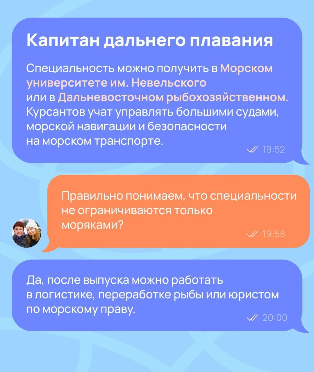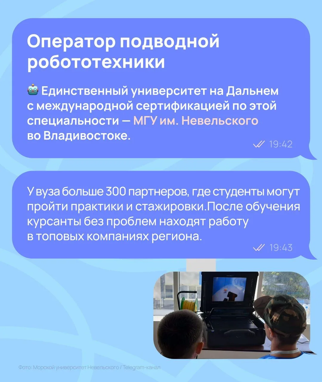 С таким вопросом к нам обратились родители старшеклассников. Отвечаем — в карточках. Важно: в посте упомянули далеко не весь список эксклюзивных профессий, которым можно обучиться в вузах Дальнего.