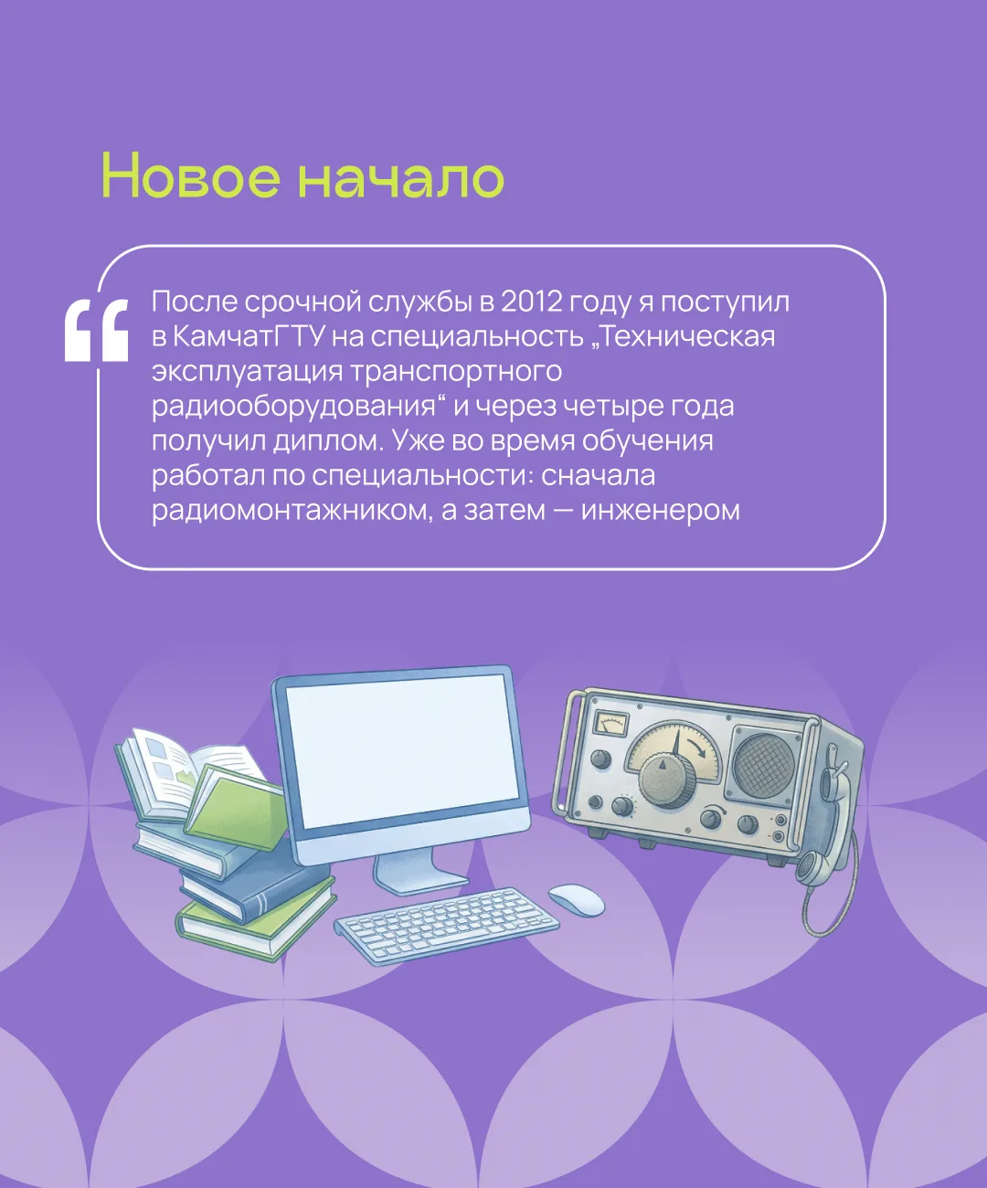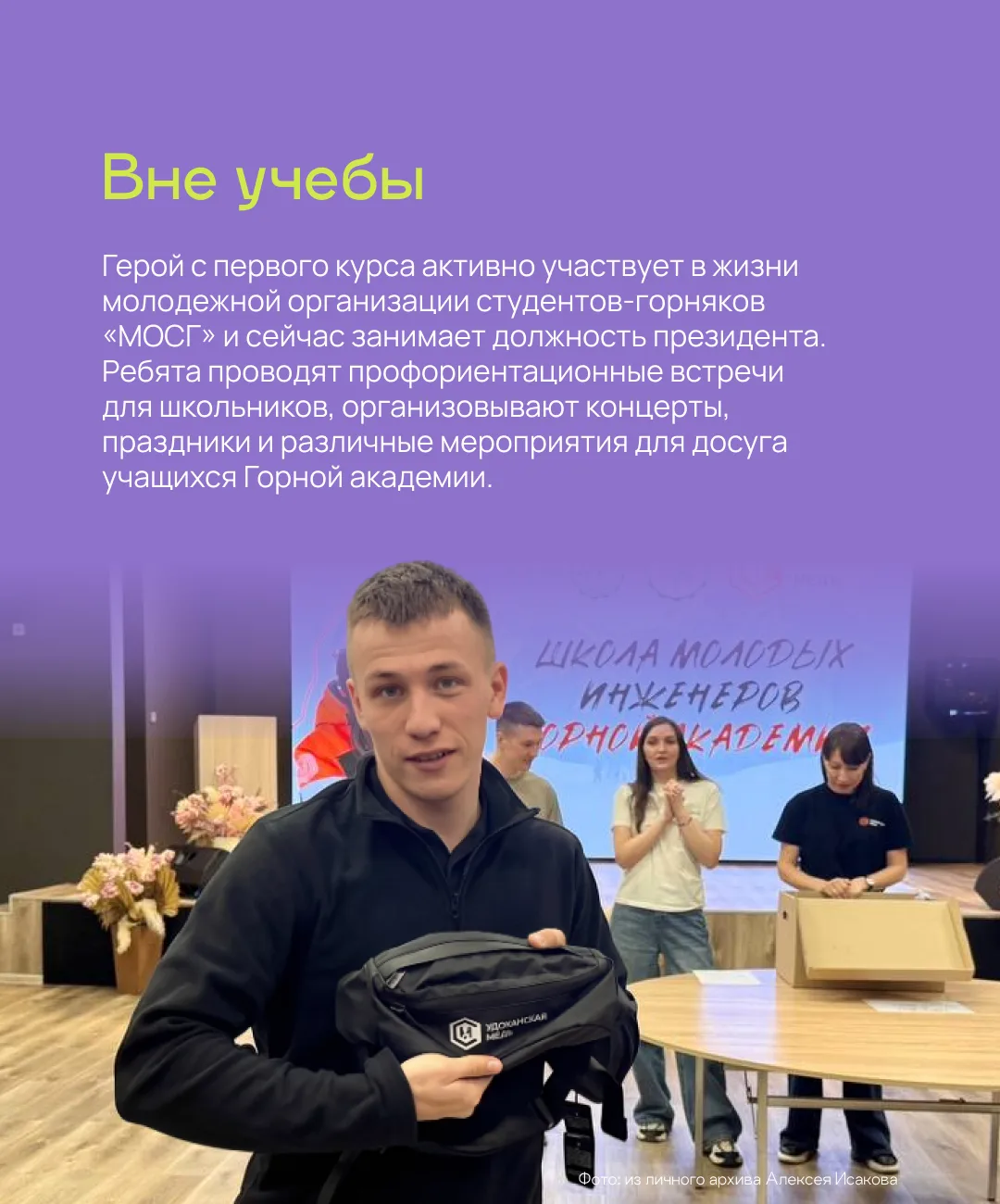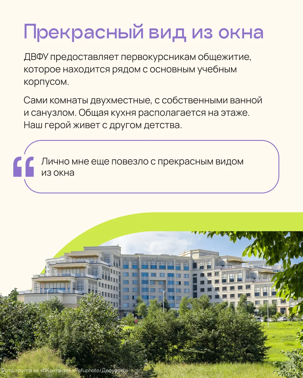 В карточках рассказываем, почему Михаил выбрал ДВФУ, как устроен вуз изнутри и какие планы у молодого человека на будущее. Еще больше историй успеха студентов с Дальнего вы найдете у нас на сайте.