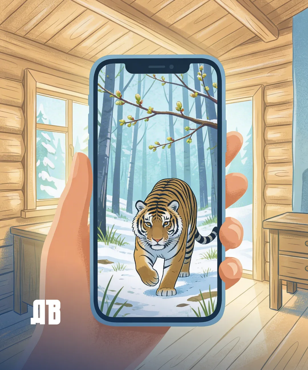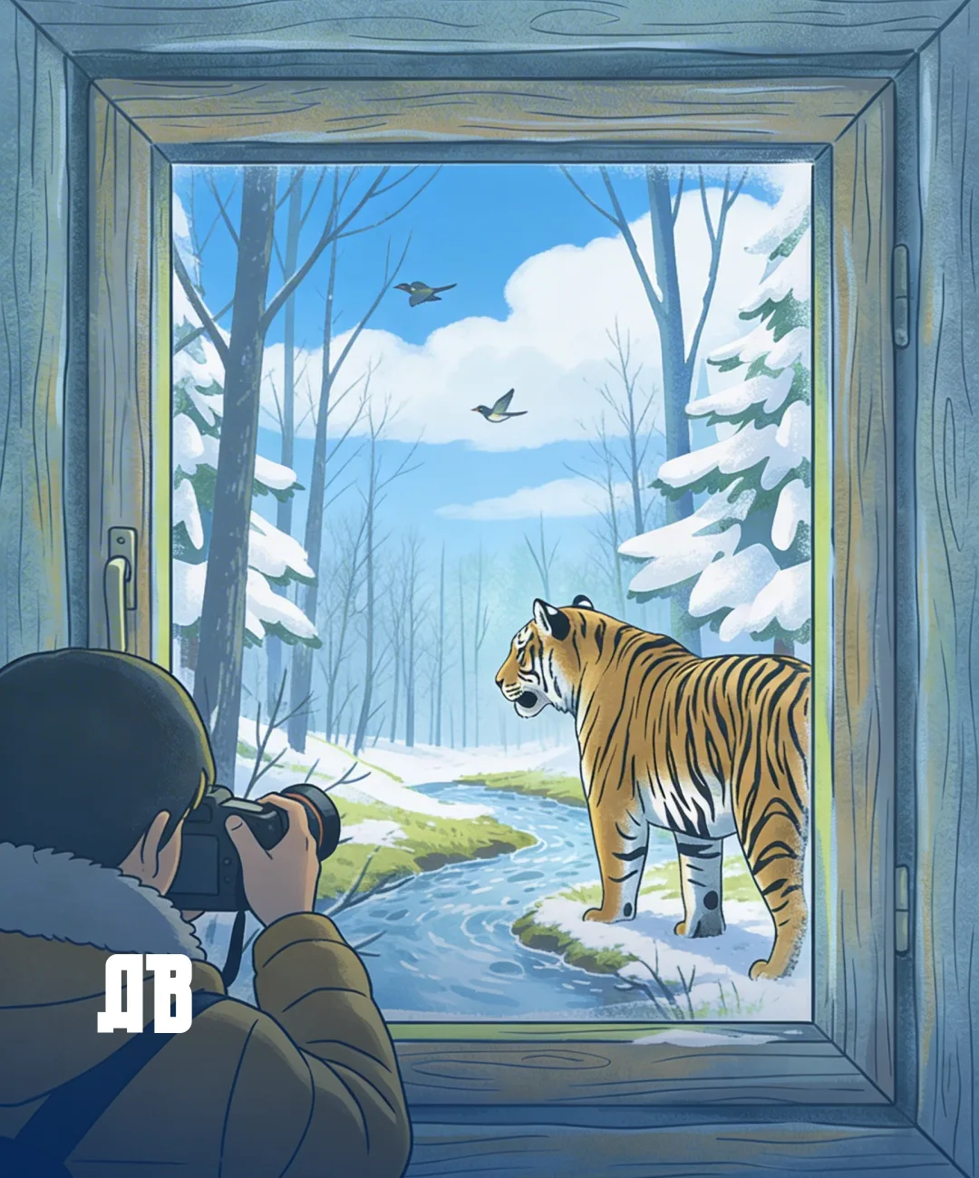 Метрах в 200 от нас деревянный домик. Идем к нему. Василий Петрович по дороге рассказывает, что эту экотропу помогали обустраивать студенты-волонтеры из отряда «Тигр», а вот в таких домиках как раз можно покараулить тигров.